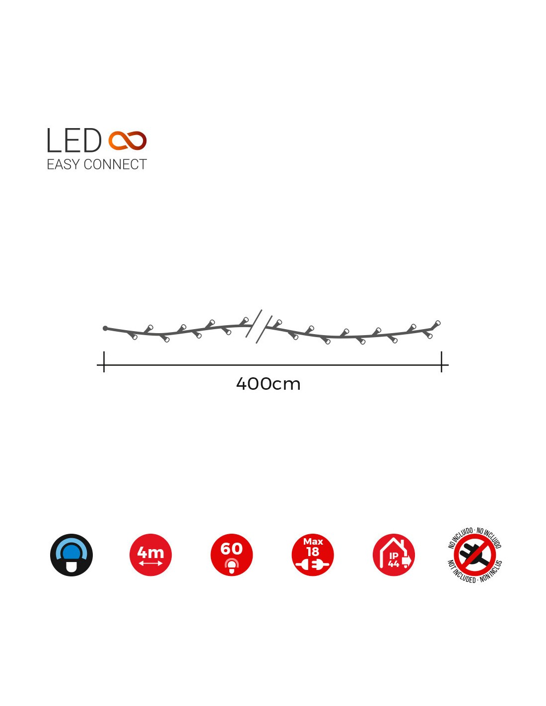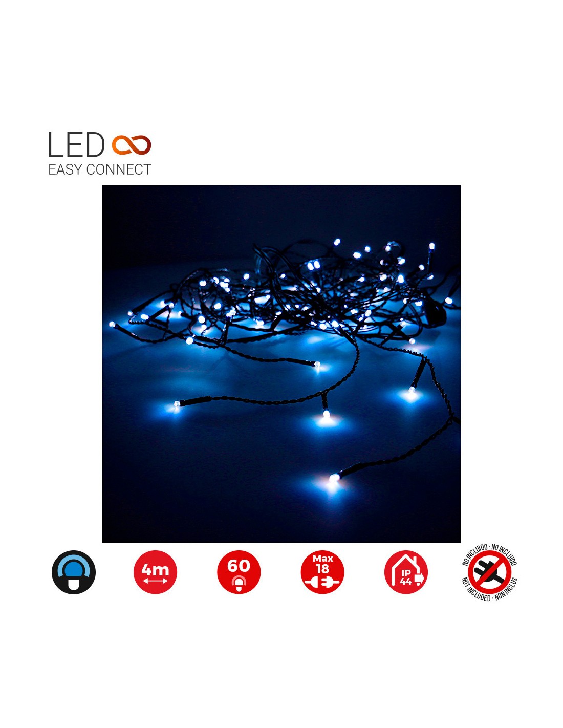Guirnalda easy-connect 4m, 60 leds azul, 30v, ip44, cable verde, n° interconexiones max. entre cortinas 18, no incluye transformador (este se puede adquirir segun sus necesidades: una cortina de funcion fija o multifuncion) interior-exterior,total 1,08w