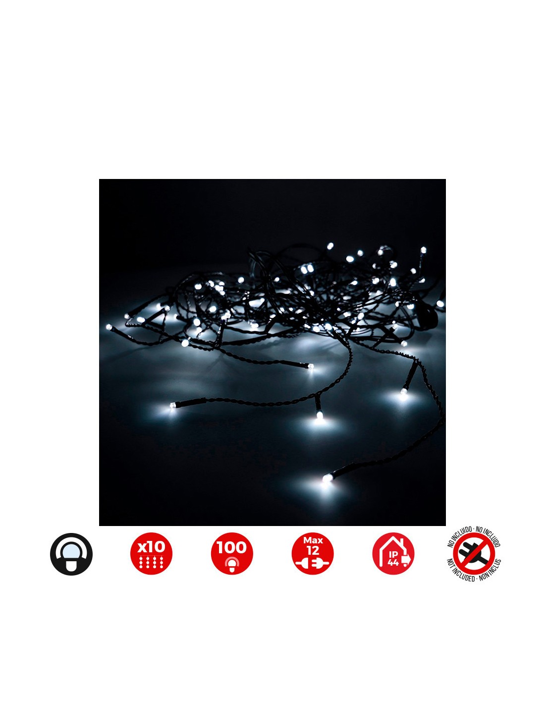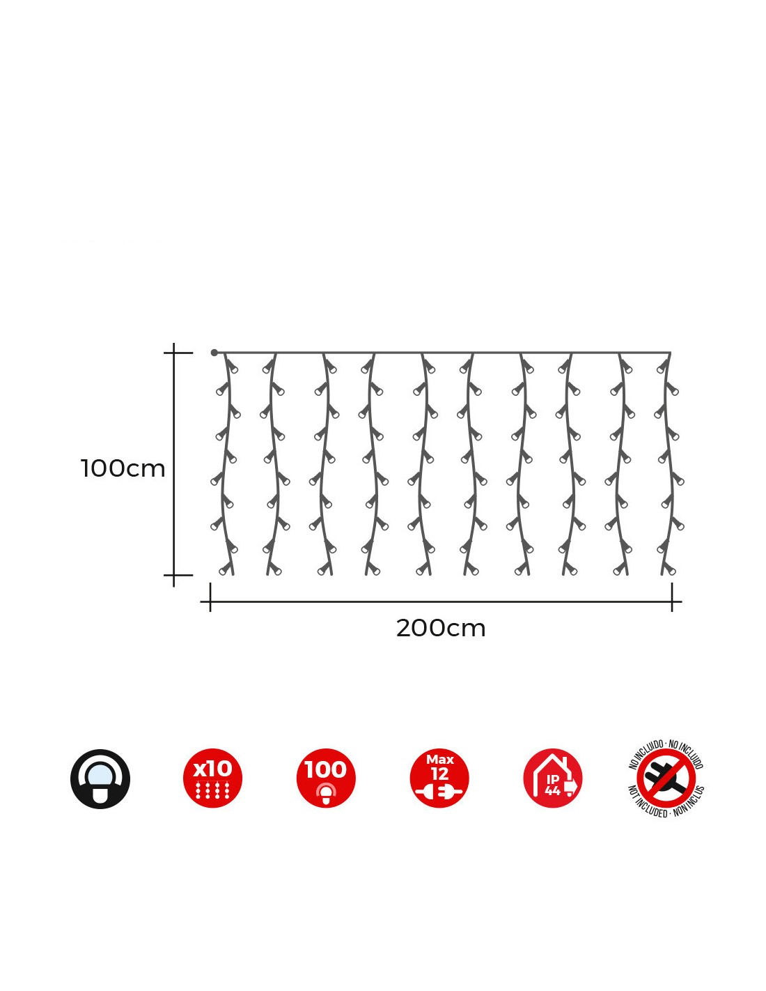 Cortina easy-connect 2x1m, 10 tiras, 100 leds blanco frio, 30v, cable verde, n° interconexiones max. entre cortinas 12, no incluye transformador (este se puede adquirir segun sus necesidades: una cortina de funcion fija o multifuncion), ip44,total 1,8w