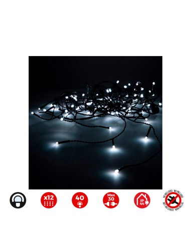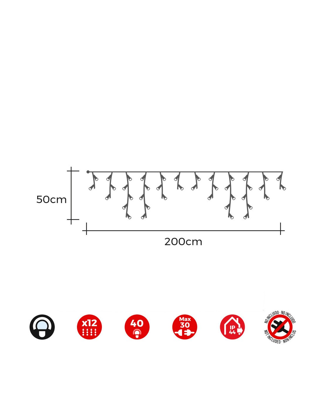 Cortina icicle easy-connect 2x0,5m,12 tiras, 40 leds blanco frío, 30v, cable verde, n° interconexiones máx. entre cortinas 30, no incluye transformador (este se puede adquirir segun sus necesidades: una cortina de funcion fija o multifuncion) interior-exterior ip44, total 0,72w