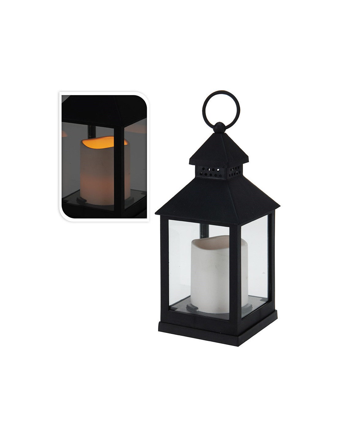 Farol con vela de led, luz cálida fija, con función de temporizador 6 h encendido/18 h apagado, color negro, funciona con 3 pilas aaa (no incluidas), dimensiones: 10,5 x 10,5 x 23 cm