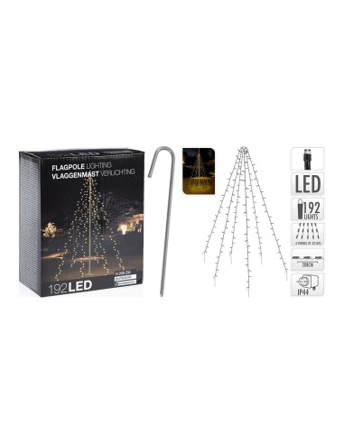 Cortina exterior 192 leds blanco calido especial para arboles 5mm led 5m 2,08m (alto) de cable 6,5cm de distancia entre leds total 200cm 6 tiras de 32 led cada una incluye ganchos, cable, aro metalico ip44 con transformador 140x75x173mm