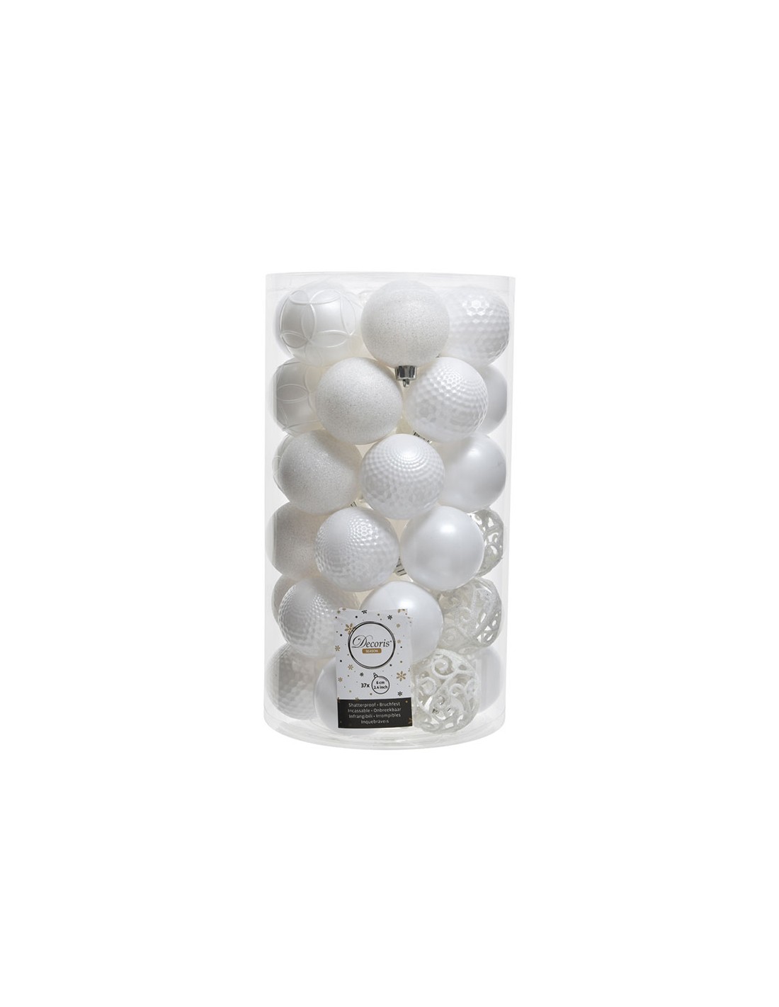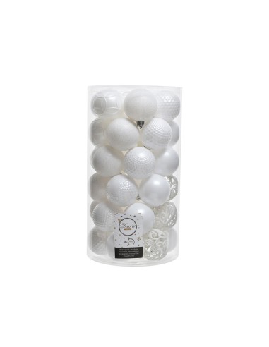 Tubo con 37 bolas blancas decorativas para arbol de navidad ø6cm (diámetro)