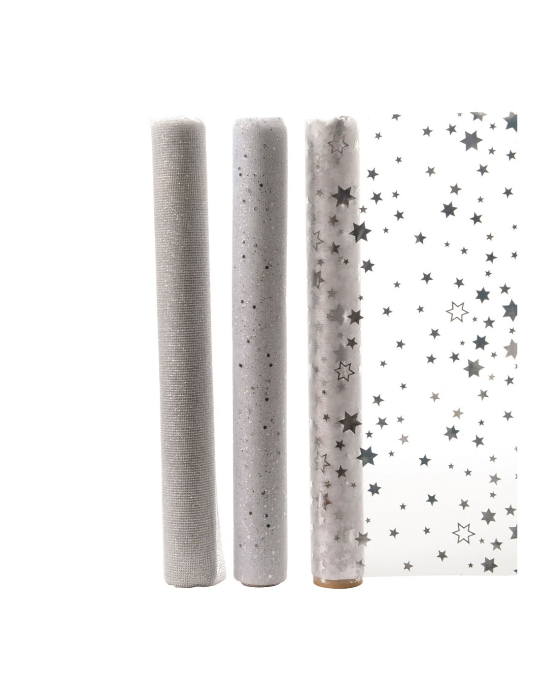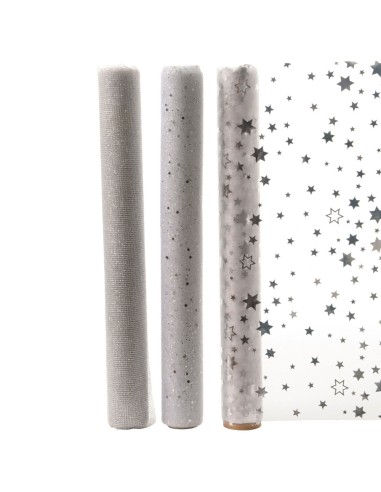 Camino de mesa de organza 3 modelos surtidos transparentes con purpurina 200x35cm