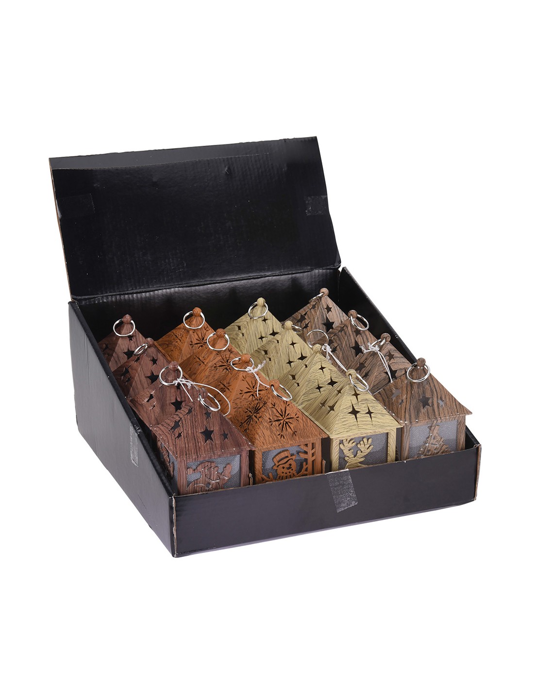 Farol led tallado efecto madera. 4 modelos surtidos 1xcr2032 no incluida 6,5x6,5x12cm (ancho/fondo/alto) colores/modelos surtidos