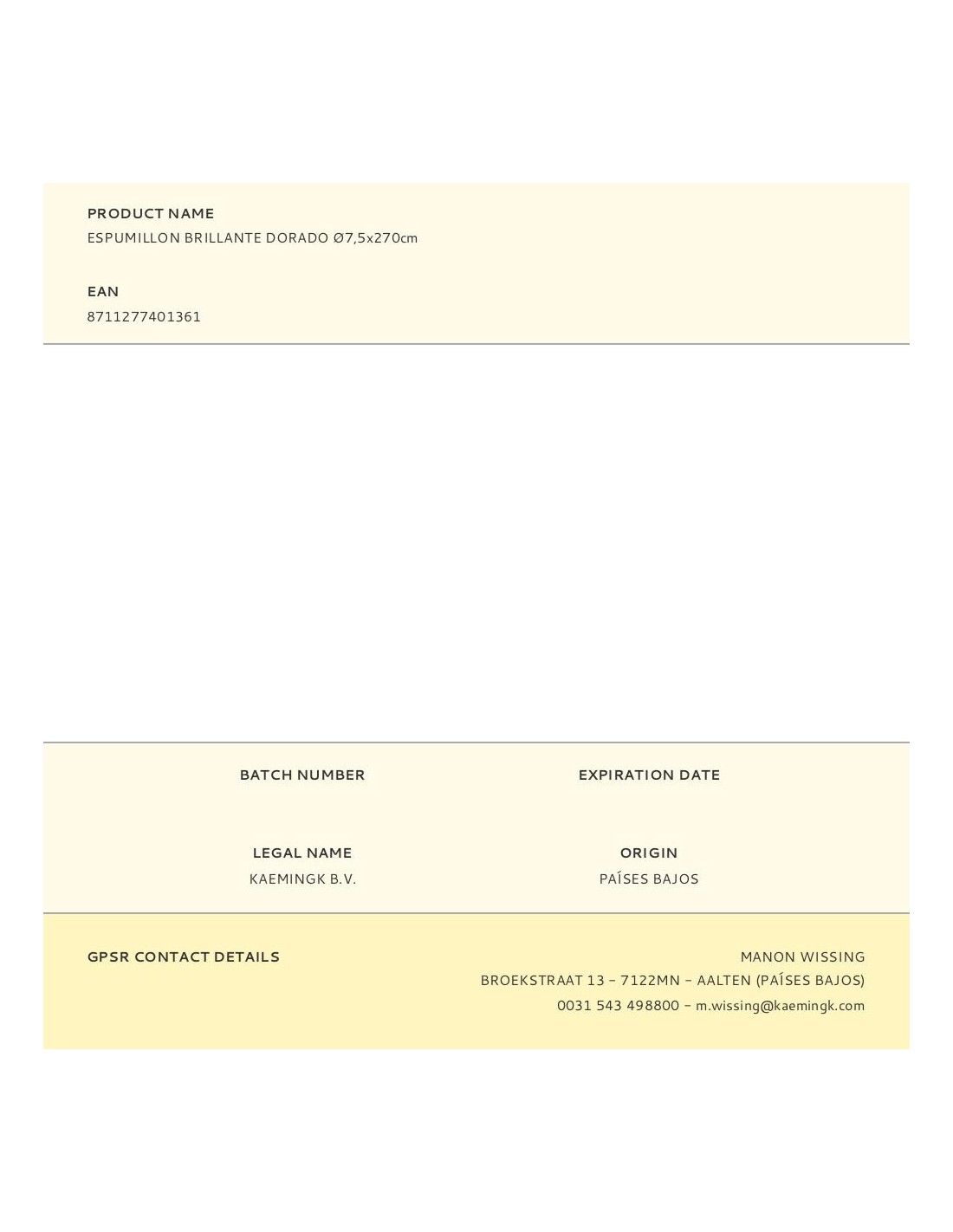 Espumillon brillante dorado ø7,5x270cm (diámetro/alto)