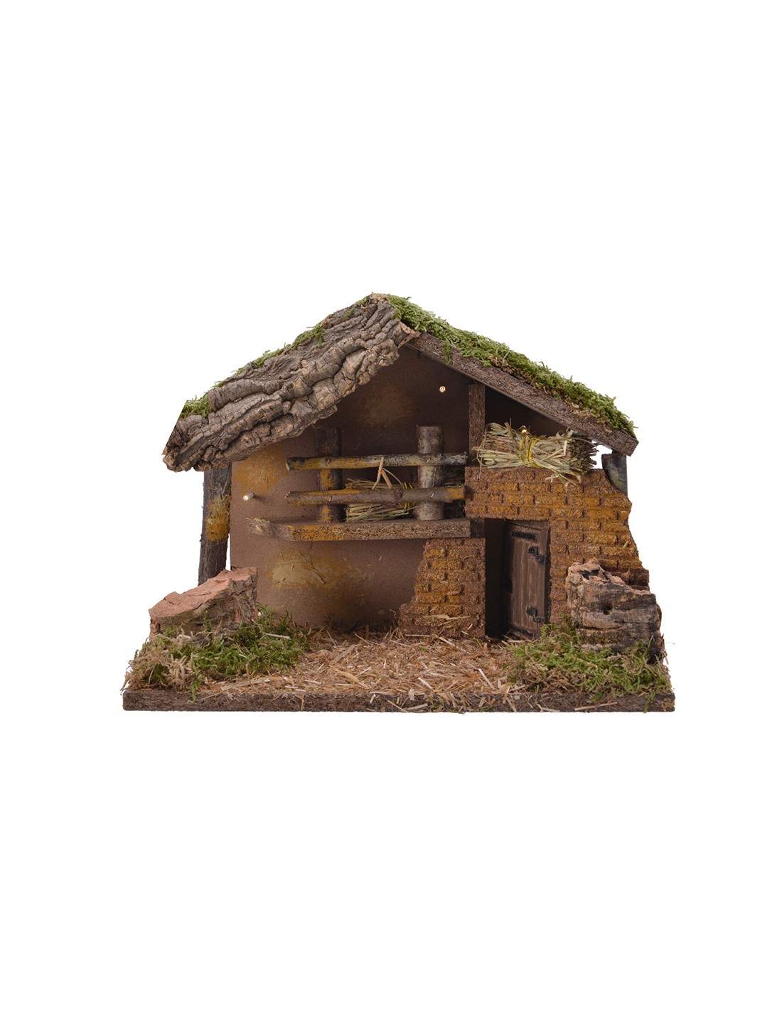 Casa para belen con led y musgo 32x16x24cm (ancho/fondo/alto). cable transparente, con temporizador 6h. 2xaa no incluidas.