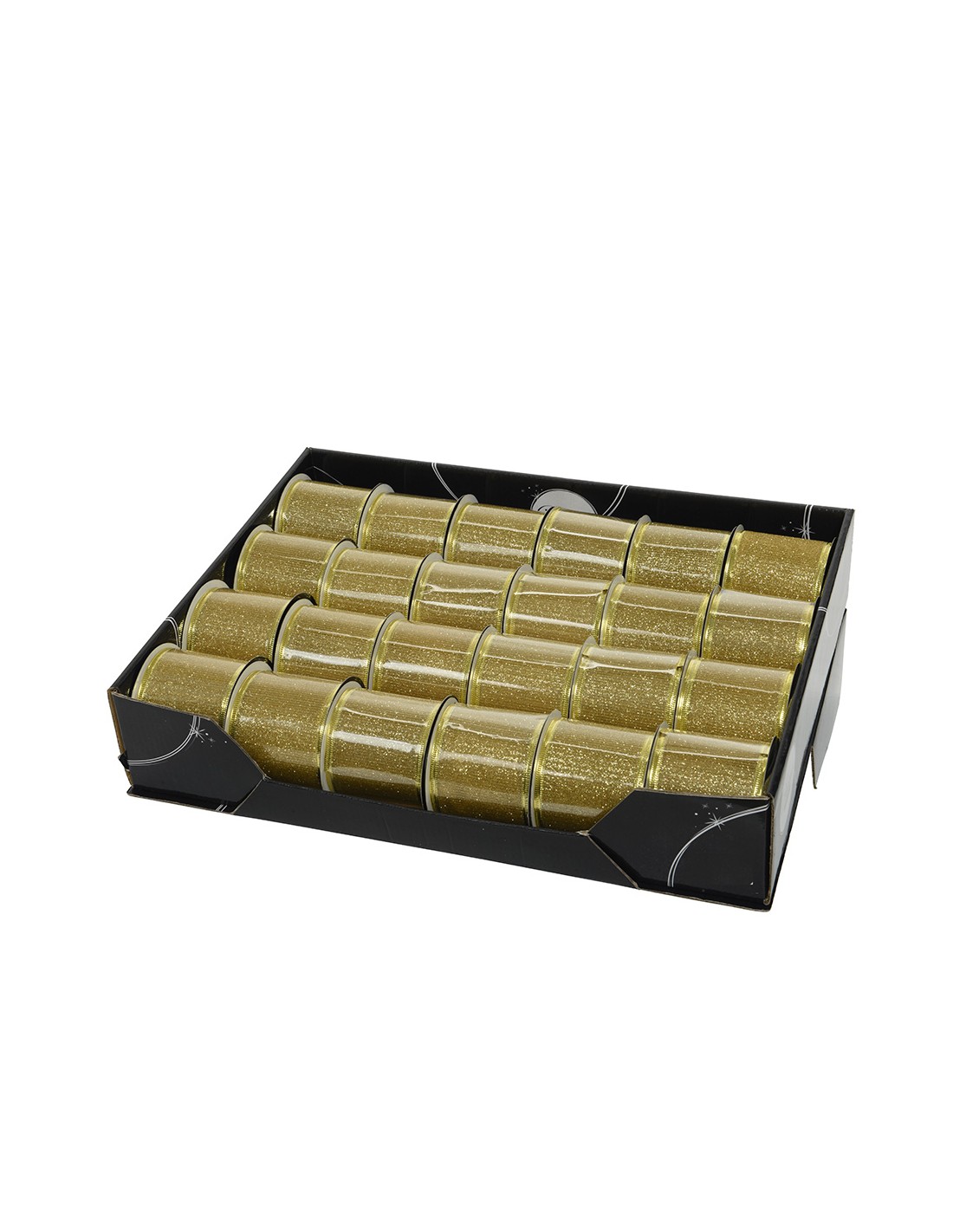 Lazo con purpurina dorado 270x6,3cm. expositor 24 unid.