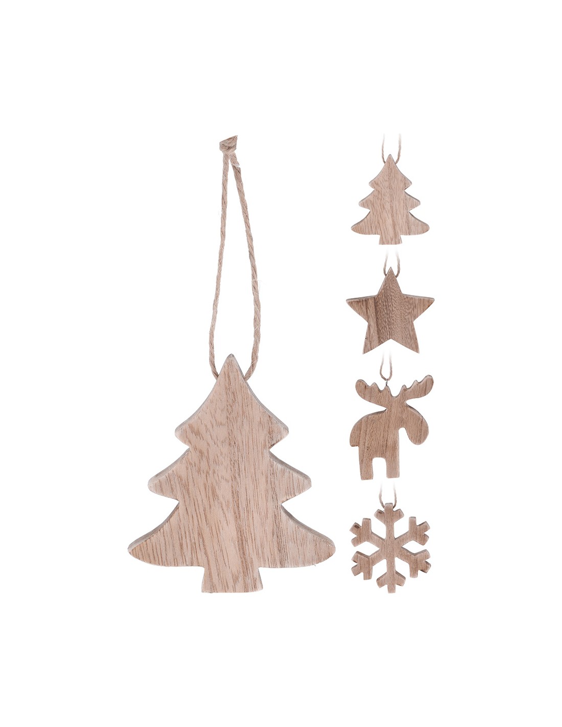 Adorno navideño colgante de madera con colgante de yute, 10 cm, madera de color natural modelos surtidos