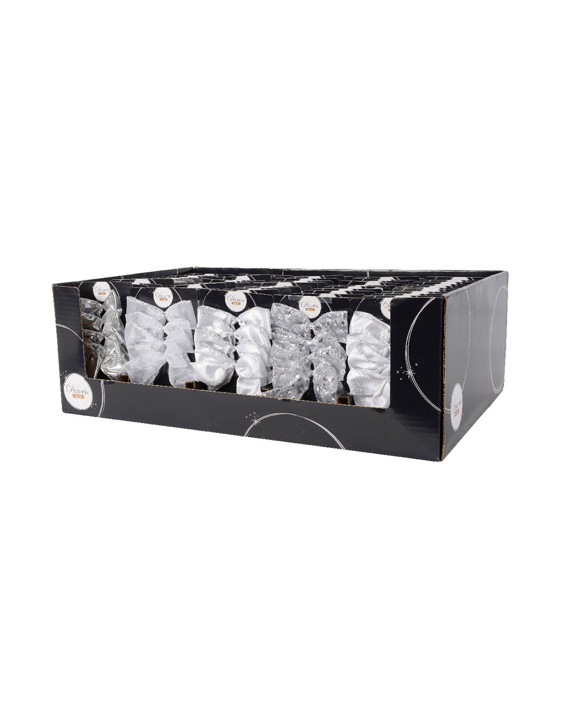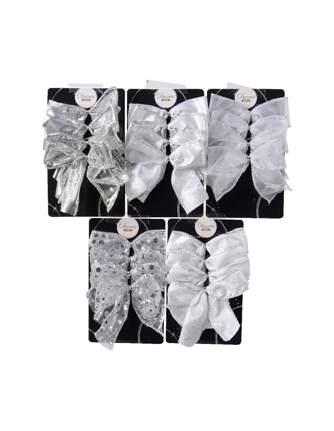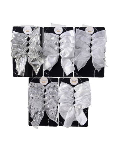 Lazos de poliester plata para decoración surtidos. poliéster plata en liso- 3,8cm x 11,4cm x 8,9cm con alambre- poliéster blanco transparente en liso- 3,8cm x 11,4cm x 8,9cm con alambre- poliéster blanco satén con puntos en la superficie- 3,8cm alambre de 3,8cm x 11,4cm x 8,9cm de ancho - transparente poliéster blanco con puntos de brillo regulares - alambre de 3,8cm x 11,4cm x 8,9cm - alambre de raso de poliéster blanco con árbol de navidad - alambre de 3,8cm x 11,4cm x 8,9cm