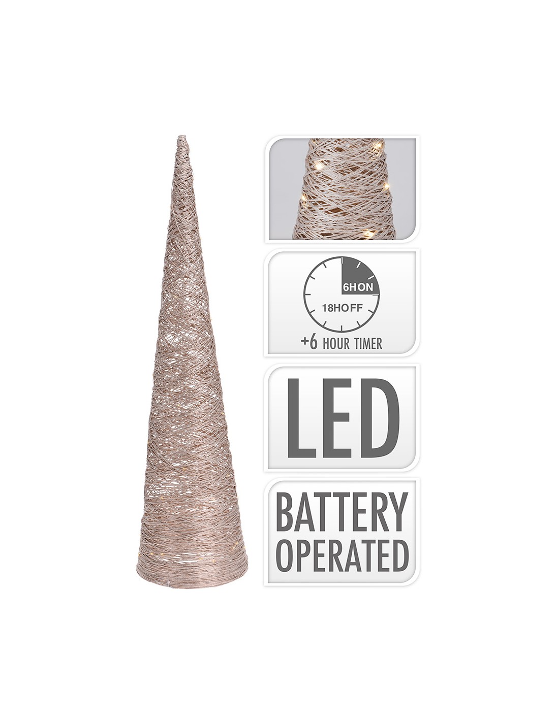 Arbol de rattan en forma de cono con 40 leds luz calida 80cm dorado ip20 interior ø20x80cm (diámetro/alto) 3xaa no incluidas con programador de 6h