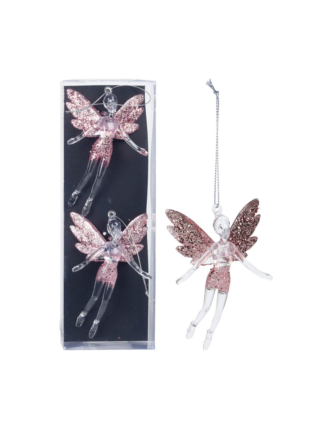 Set 2 unid. decoración colgante angelito brillante rosa. pp, tamaño: 8x3x13cm (ancho/fondo/alto), peso: 14g