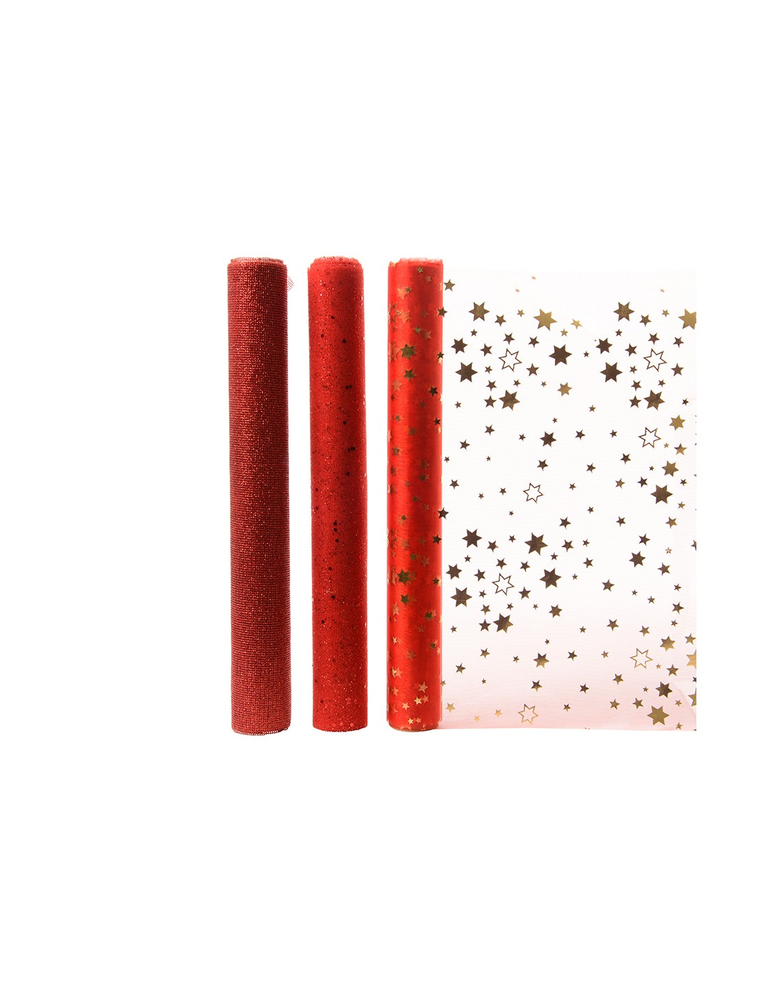 Camino de mesa de organza, 3 modelos variados en tonos rojos, 200 x 35 cm
