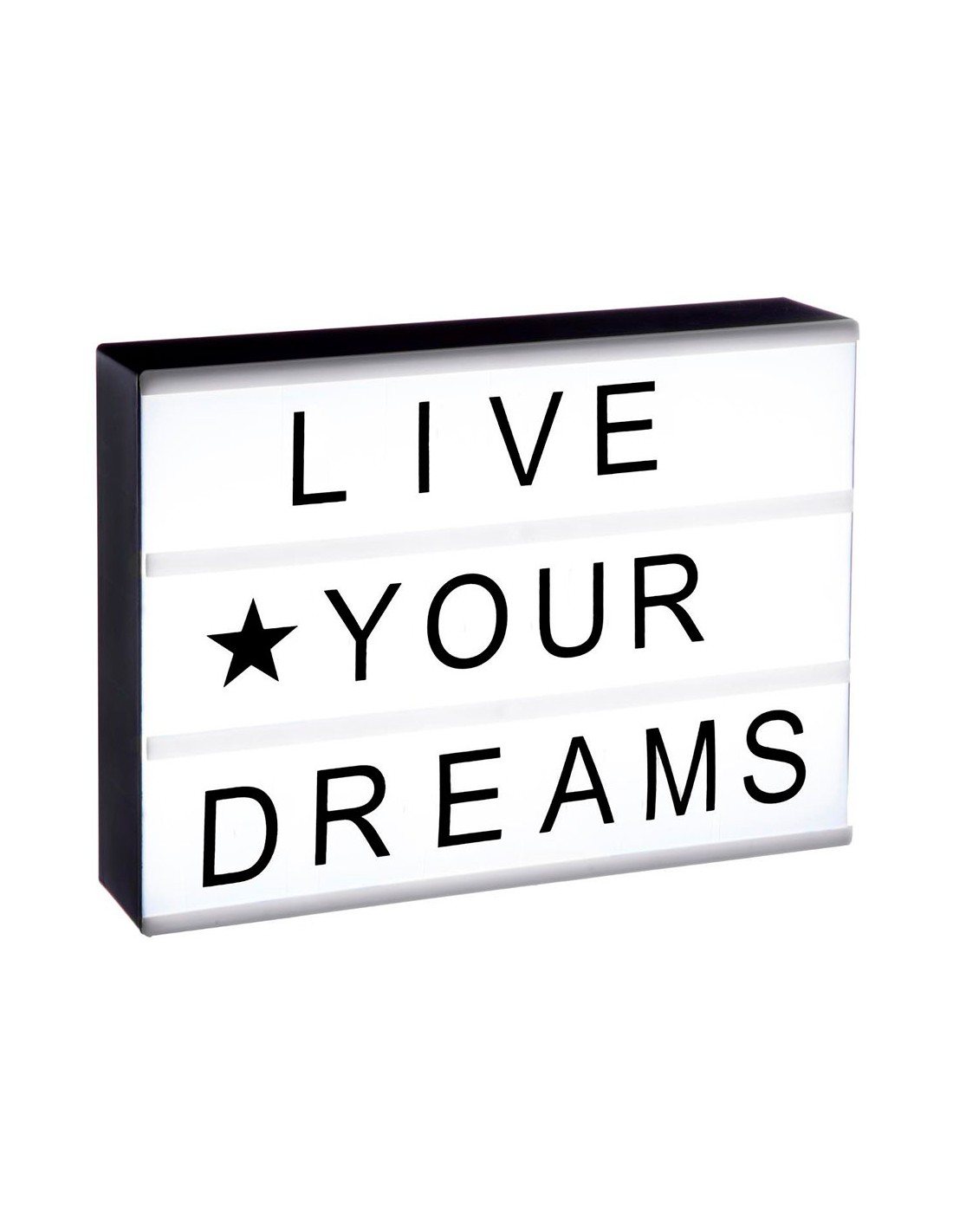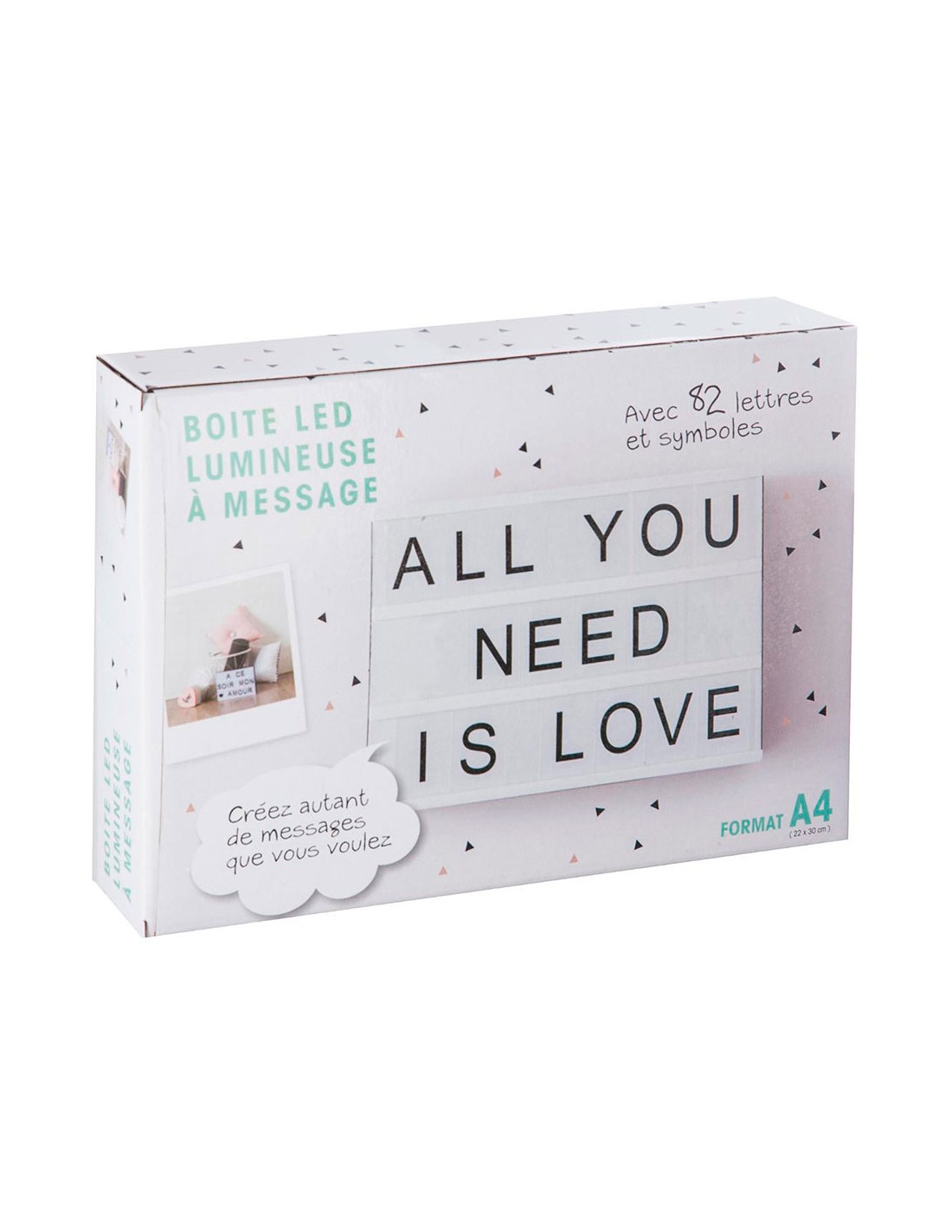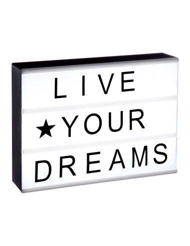 Caja de mensajes luminosos 30x22x5.5cm. funciona con 3 pilas aa no incluidas.