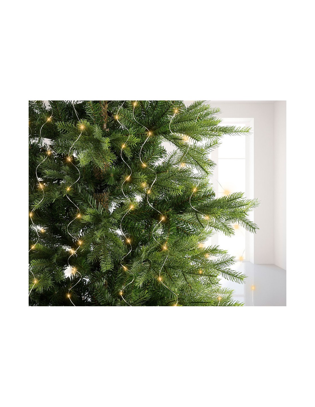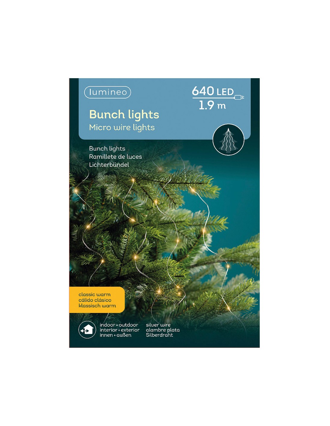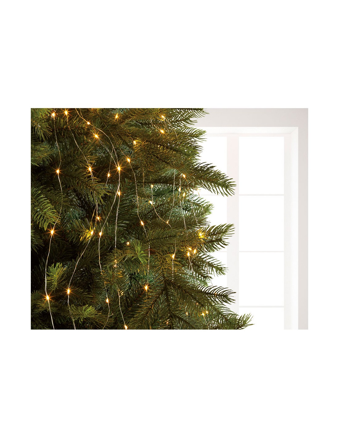Guirnalda fija micro led para árbol, 640 leds, luz cálida, 220 - 240 v 50/60 hz, exterior ip44, cable transparente, 32 tiras de 1,9 m con 20 leds cada una bombillas no reemplazables, cable de alimentación de 5 m, temporizador: 8 h encendido / 16 h apagado, incluye bucle para enganchar. largo total: 6,9 m