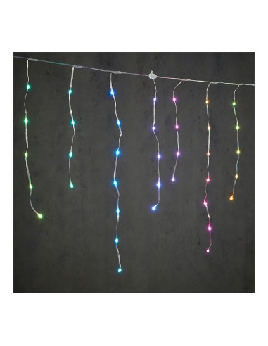 Cortina led efecto carámbano multicolor. medidas: 300x70cm. 150 leds ip44. con control remoto y temporizador.