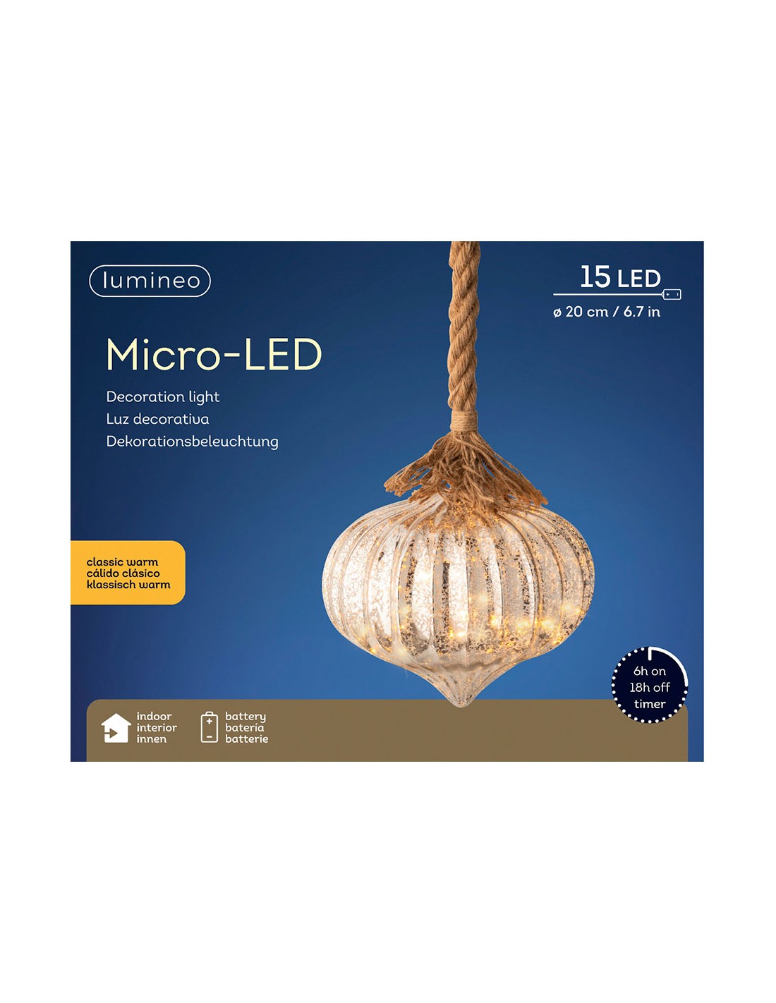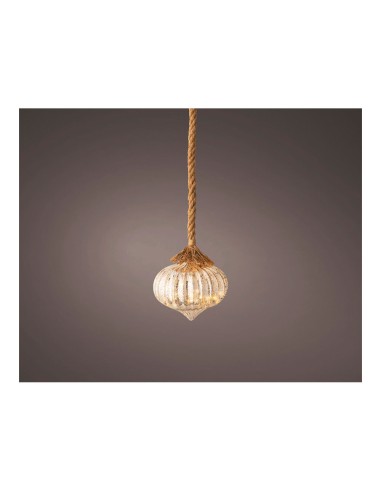 Luz colgante microled ø20x21cm 15 leds. luz fija blanco cálido. ip-20, interior, 3xaa, longitud del cable principal: 100cm, detalle natural: yute tiliaceae, temporizador: 6 horas