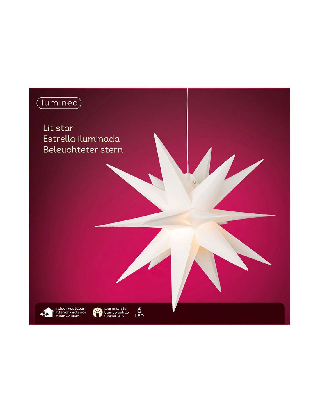 Estrella blanca iluminada ø40x40cm 6 leds exterior. luz cálida, longitud cable 7m