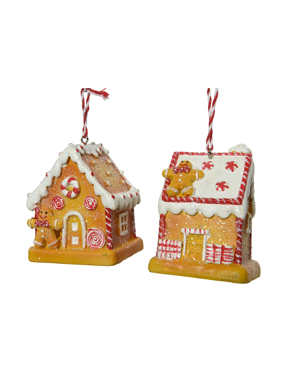 Casa poliresina gingerbread diseños surtidos 6,5x5x7cm forma de colgar:cuerda roja/blanca percha con colgador
