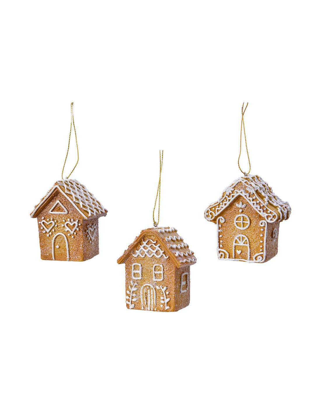 Casa poliresina 7cm (venta unitaria) modelos surtidos. forma:pan de jengibre, forma de colgar: colgador dorado