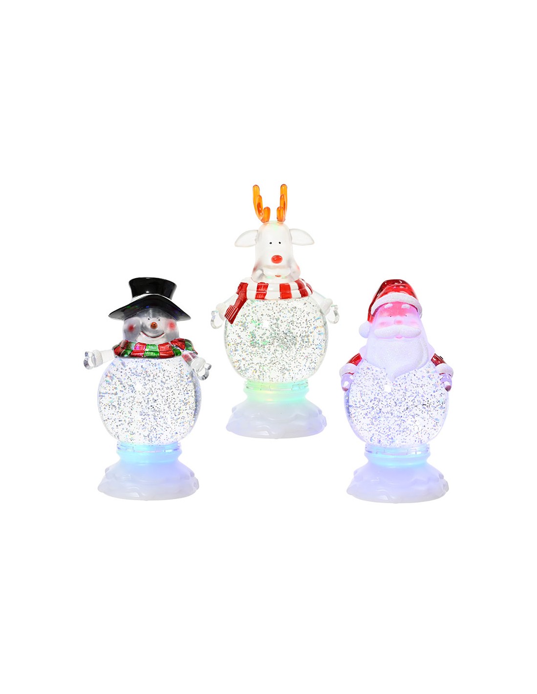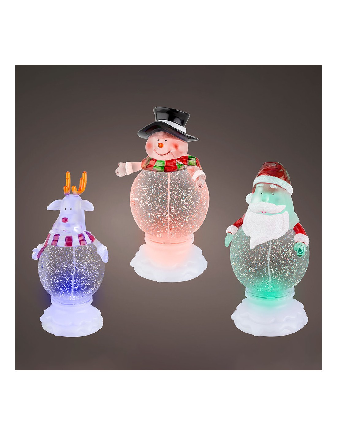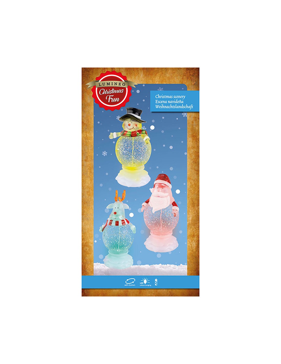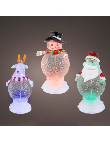 Figuras led de navidad modelos surtidos 488719 con led de color intercambianle. con formas de muñeco de nieve, papa noel y reno. medidas:13x10x21cm funcionamiento con pilas aaa. para solo uso en interior. ip-20