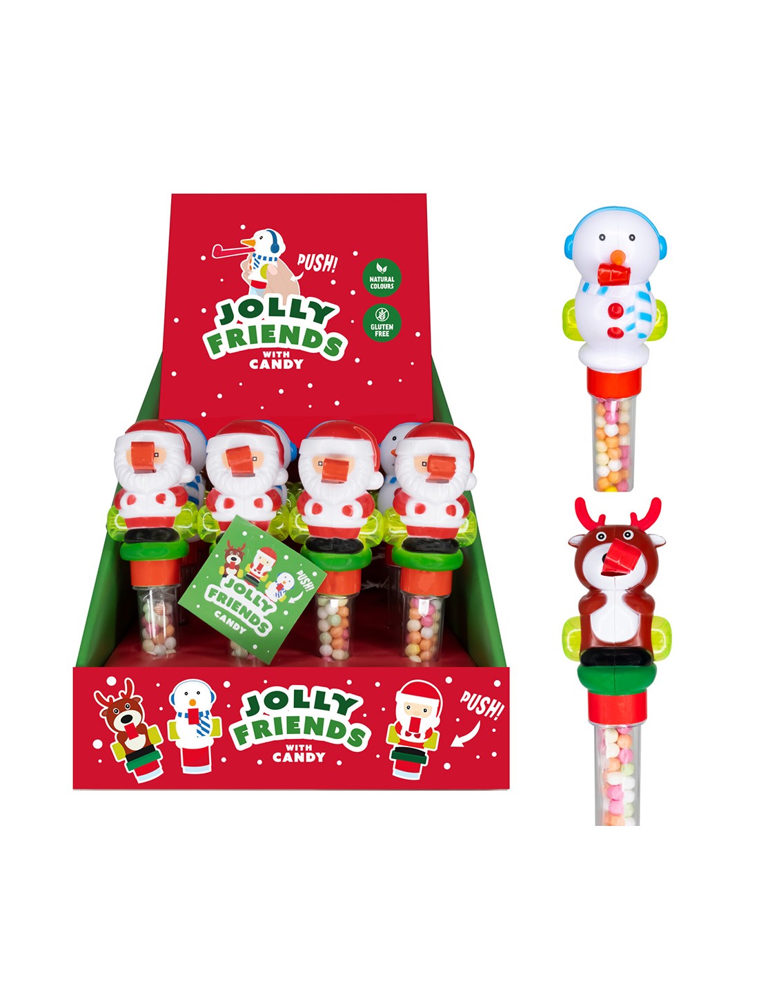 Muñeco que estira la lengua con caramelos sin gluten, 3 modelos navideños: papa noel, muñeco de nieve y reno