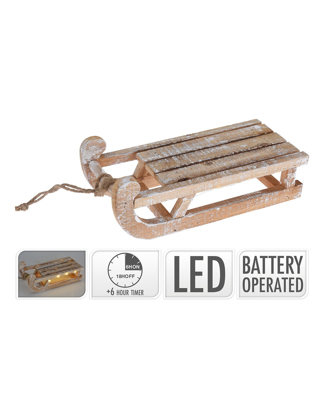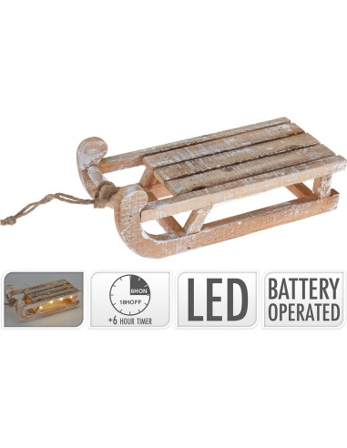 Trineo decoración led, blanco cálido, funciona con pilas 2xaa, temporizador 6h, 30x14x11cm