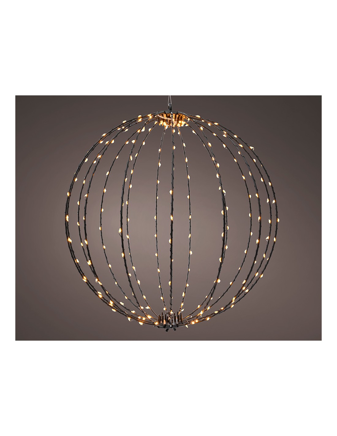 Adorno led colgante bola, de marco metálico negro, para exterior, luz fija, 240 leds, ø38cm, blanco calido, 220v 6w,cable alimentacion 5m color negro.