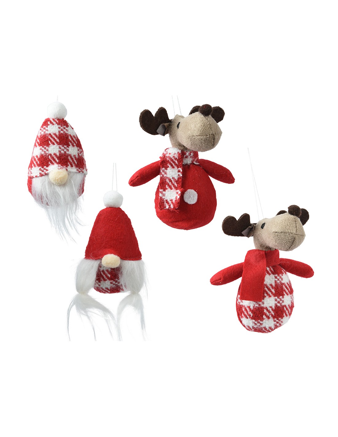 Adornos navideños de 14 cm para colgar, en tonos rojos, poliéster, 4 modelos.