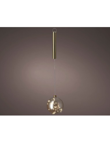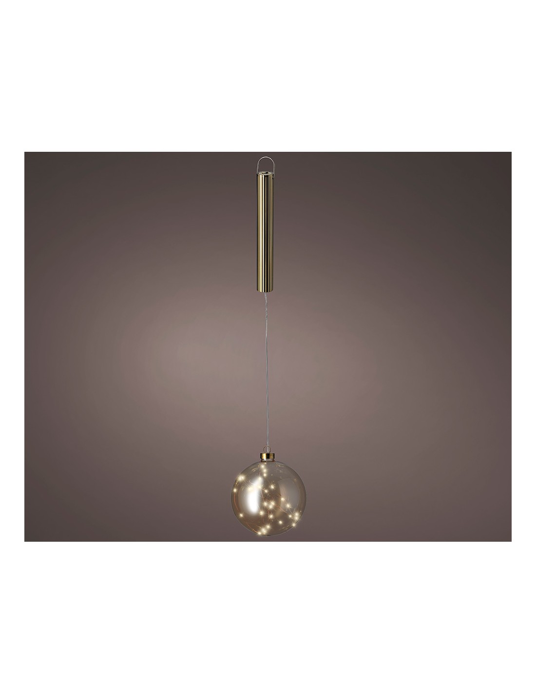 Bola colgante de cristal micro led, dorada , de interior, luz fija blanca calida, 30 leds, ø14cm, pilas 2xaaa (no incluidas), cable de alimentacion 1m color cobre, funcionamiento 48h aprox, temporizador 6h.