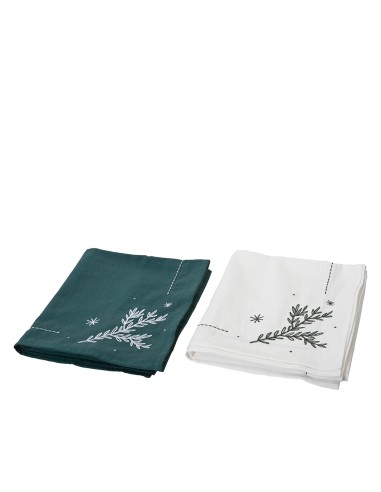 Camino de mesa 40cm x 140cm, 2 modelos: verde con motivos blancos, blanco con motivos verdes, 100% algodon