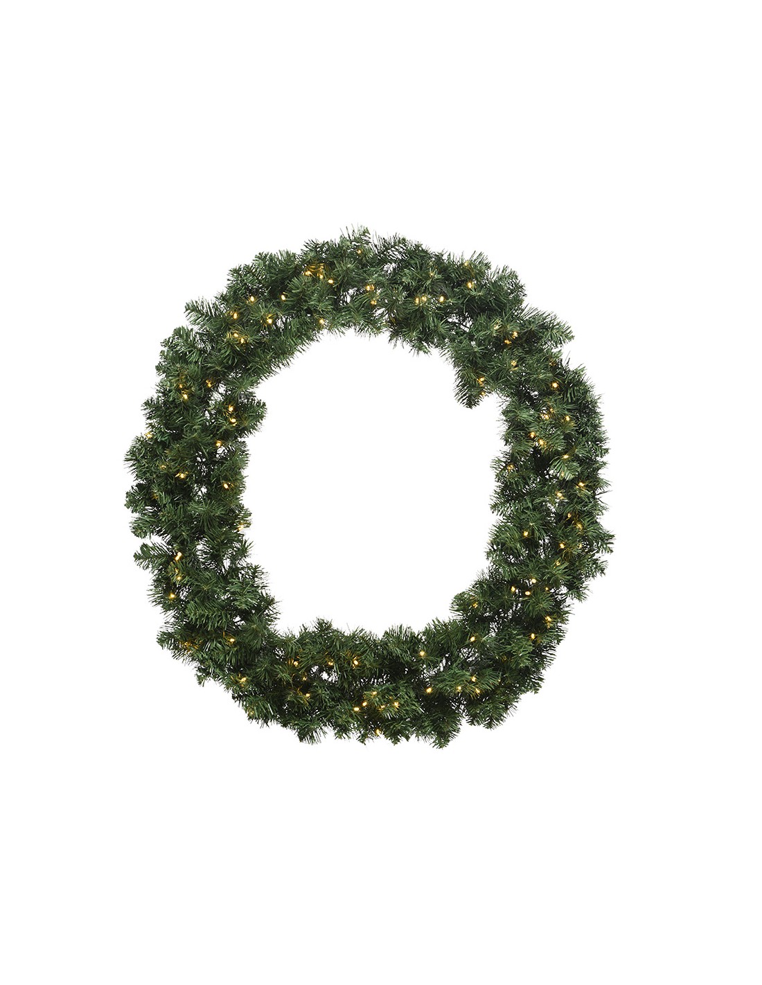 Corona imperial con microled, para exterior, parpadeante, 20 leds, ø35x8cm, blanco calido, pilas 3xaa (no incluidas), distancia entre leds 12,5cm, cable alimentacion 30cm verde, 8 funciones, 70 puntas.