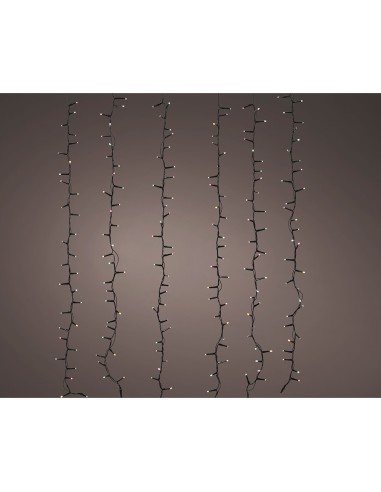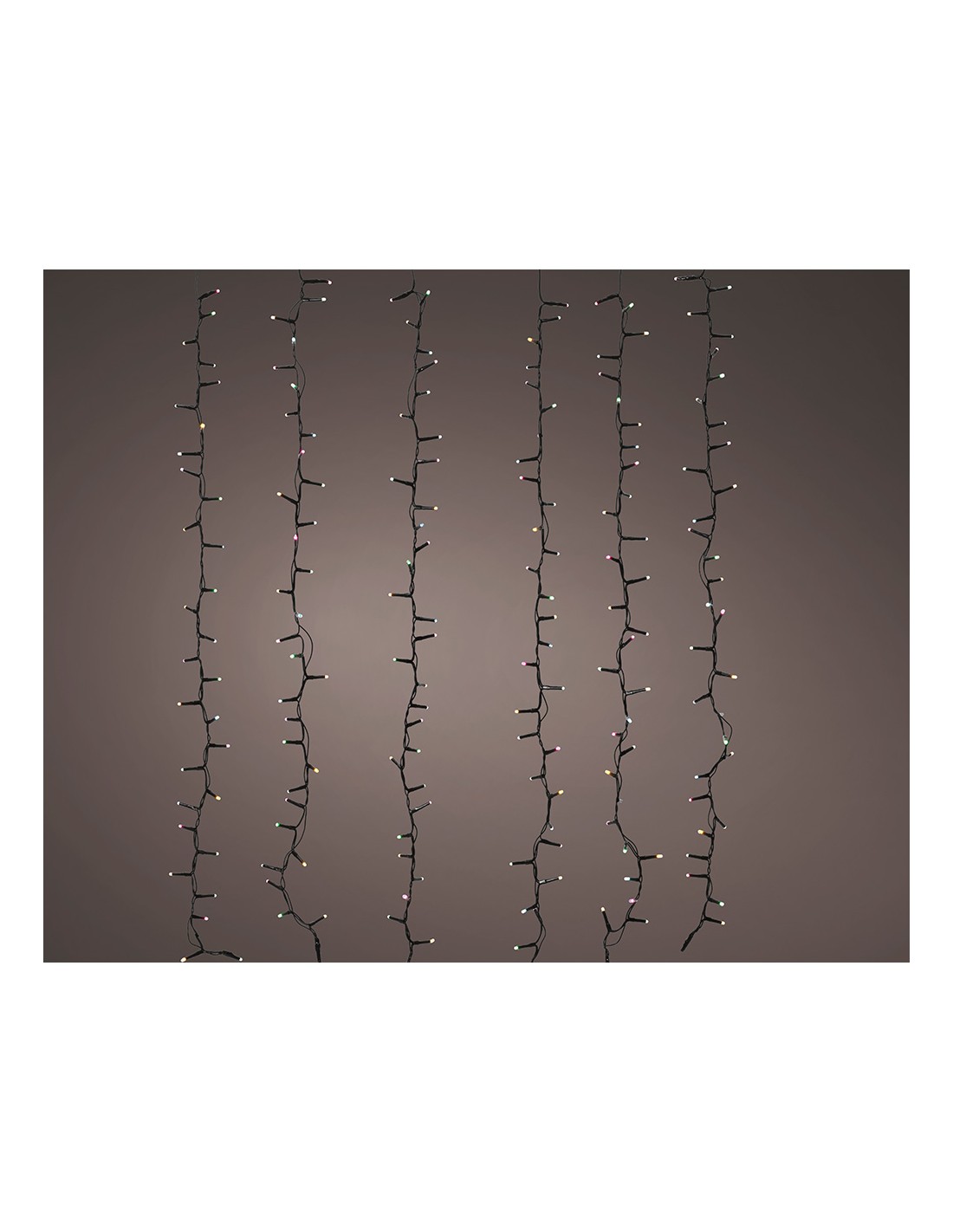 Cortina led parpadeante, 3,75m, 256 leds, multicolor suave, 220v, 3,2w, interior / exterior, ip44, 8 funciones, 16 colgantes de 60,40 y 20cm, distancia entre colgantes 25cm, cable alimentación 5m color negro. posibilidad de interconectar hasta cinco unidades, temporizador 8h encendido / 16h apagado