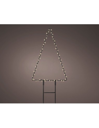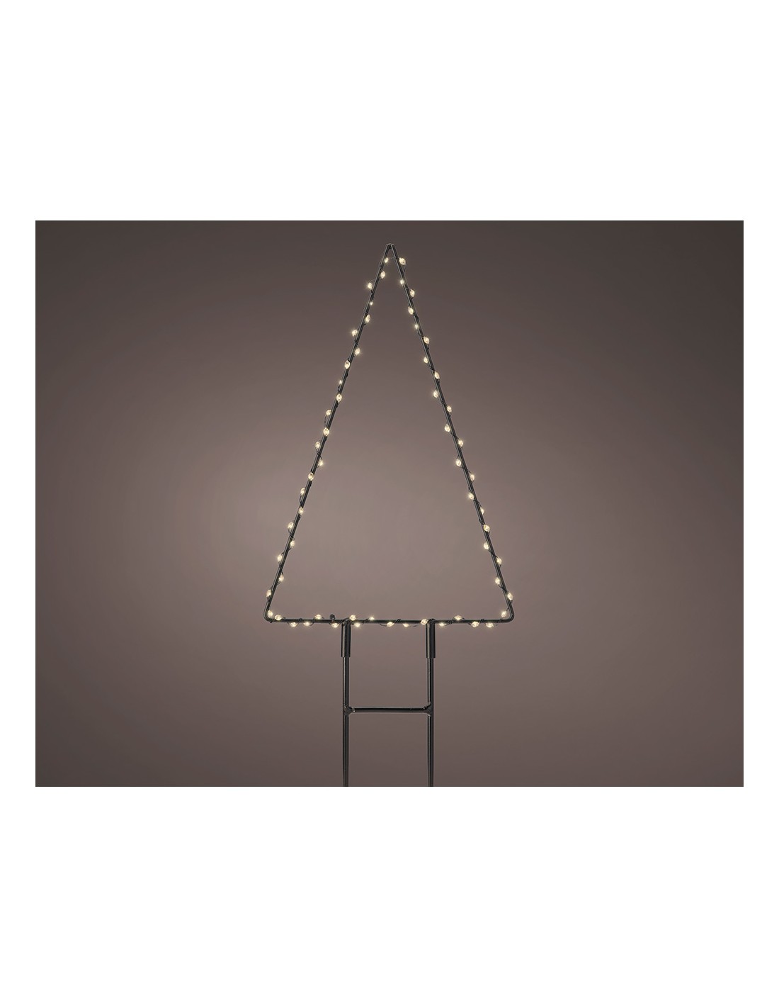 Estaca microled en forma de pino, luz fija blanca cálida, 60 leds, para exterior, 18x0,6x27cm, pila 3xaa (no incluidas), cable de alimentación 30cm color negro, funcionamiento 48h aprox, temporizador 6h. lumineo