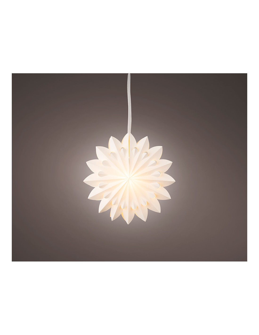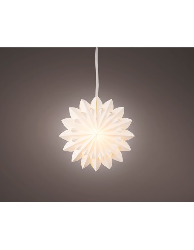 Estrella colgante de papel con 6 led, luz fija blanca cálida, para interior, medida: ø40 x 20,5 cm, funciona con pilas 3 x aa (no incluidas), cable de alimentación 50 cm color transparente, temporizador 6h encendido / 16h apagado