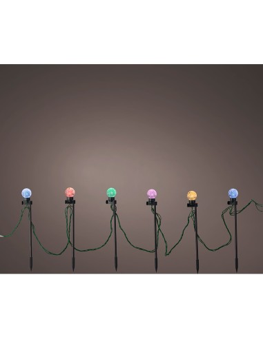 Guirnalda microleds fiesta, parpadeante, 20 luces con estaca, blanco cálido/multicolor 10 funciones, 220v 6w, para exterior ip44, 50cm entre leds, cable alimentacion 5m color verde, distancia entre primer y ultimo led 9,5m largo total 14,5m. temporizador 8h encendido/16h apagado, conectable hasta 100 luces