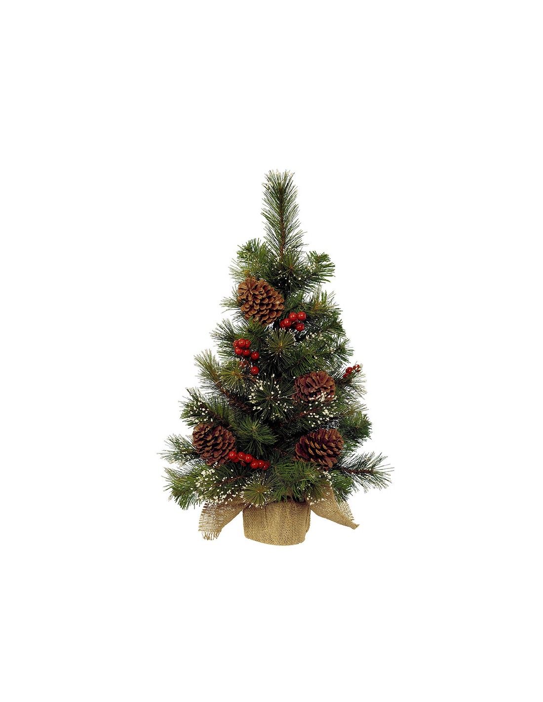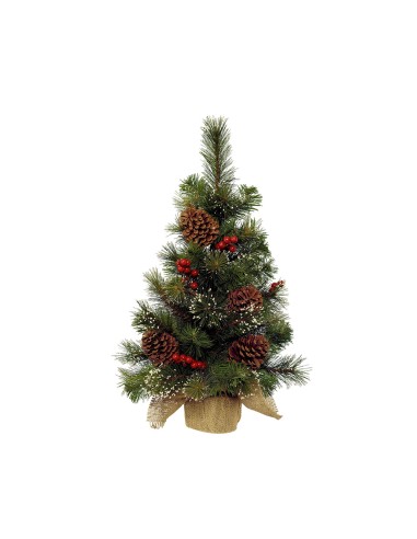 Mini abeto nevado con bayas y piñas, pvc, 30x45cm.