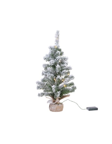 Mini arbol imperial nevado con microled, luz fija,10 leds, ø30x45cm, luz blanco calido, pilas 3xaa (no incluidas), para interior. pie con saco de arpillera.everlands