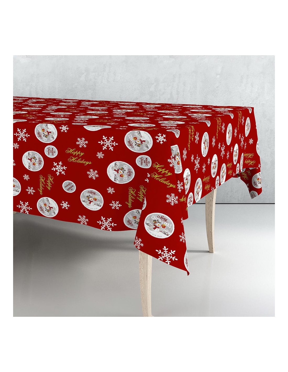Rollo de hule color rojo con motivos navideños, lámina estampada de pvc con base de tejido sintético, nivel impermeabilidad antimanchas 100%, 140 cm x 25 m
