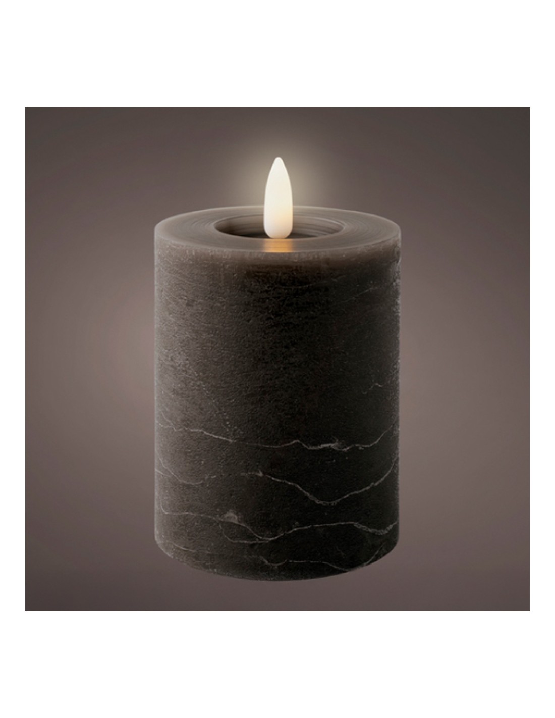 Vela de cera led, efecto llama, gris antracita, superficie lisa, acabado rústico, medidas: ø7 x 11,2 cm. uso: interior. color led: luz cálida con temporizador 6 h encendida/18 h apagada autonomía: 250 h funciona con pilas 2 x aaa (no incluidas)