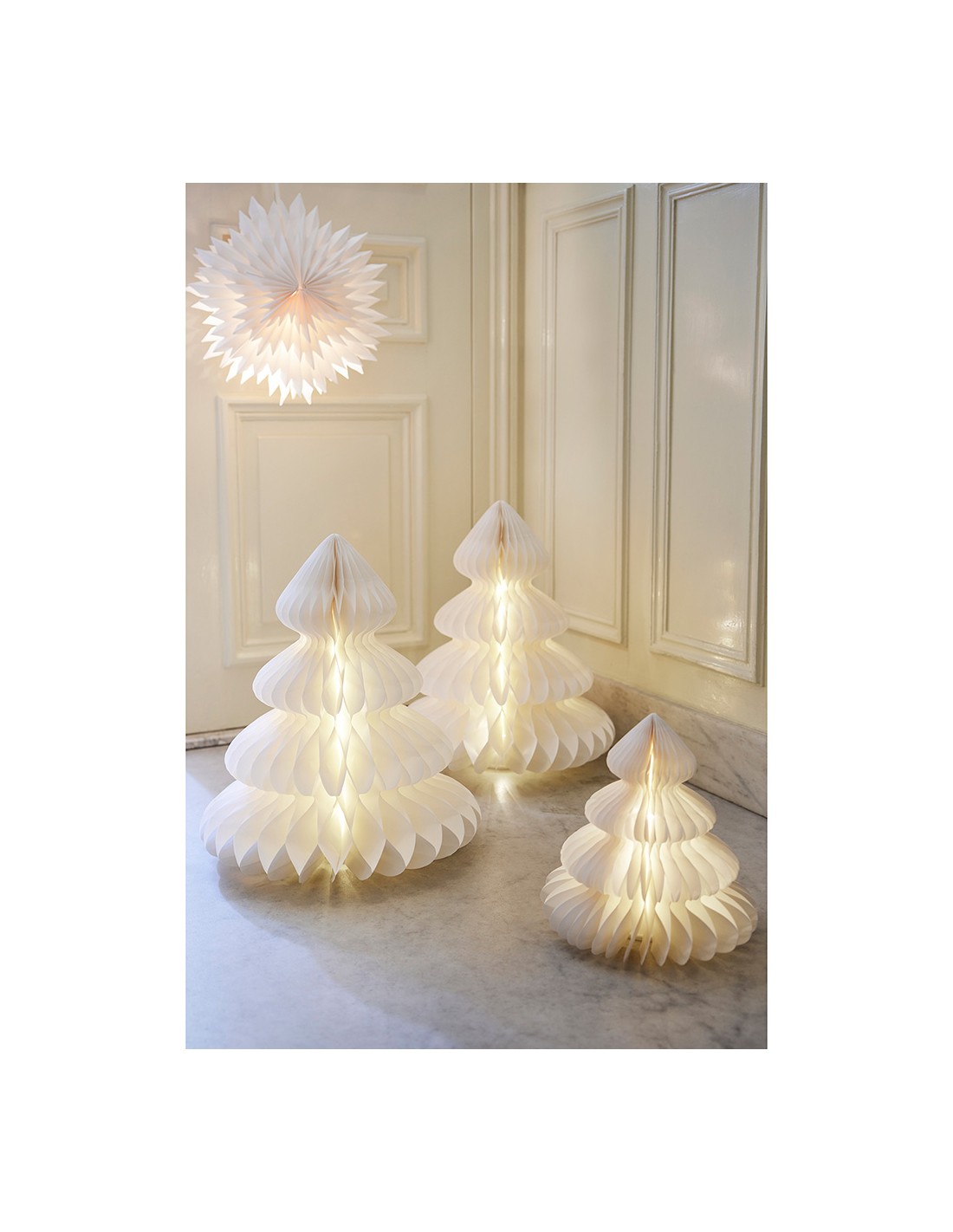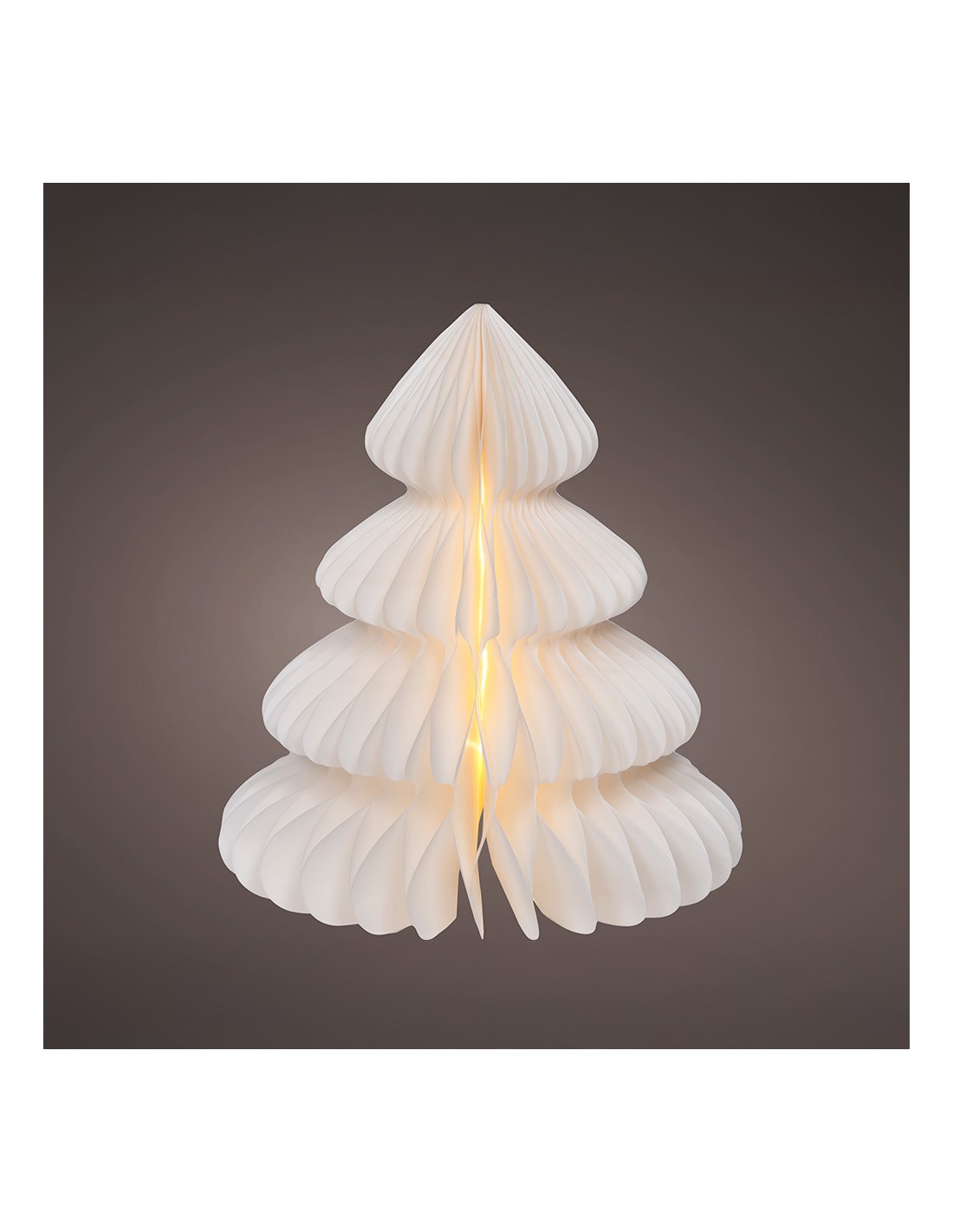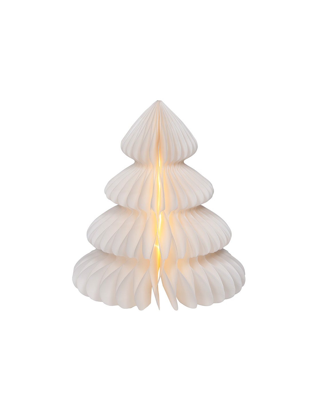 Árbol blanco de papel, 20 leds, luz cálida fija, material: papel fsc mix 100%. para uso en interiores, funciona con pilas 3 x: aa (no incluidas), con temporizador 6 h encendido / 18 h apagado. medidas: ø24 x 28 cm