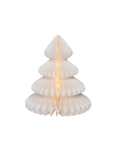 Árbol blanco de papel, 40 leds luz cálida fija, material: papel fsc mix 100%, para interior, funciona con pilas 3 x aa (no incluidas), con temporizador 6 h encendida/18 h apagada, medidas: ø42 x 48 cm