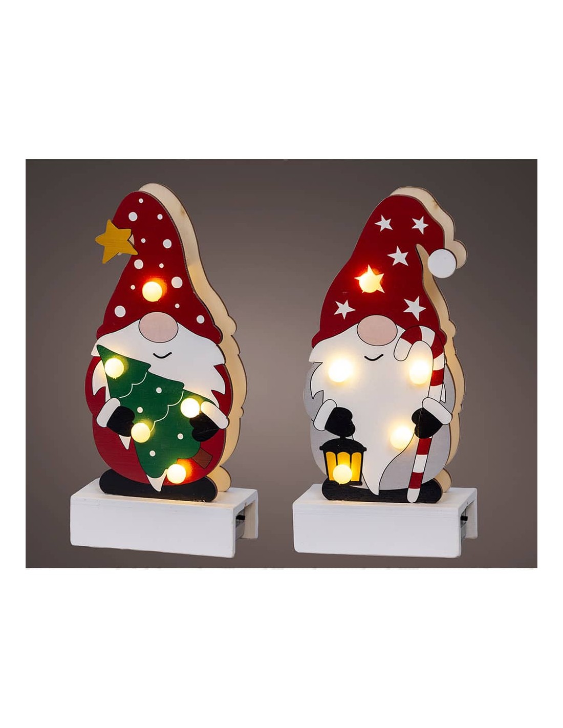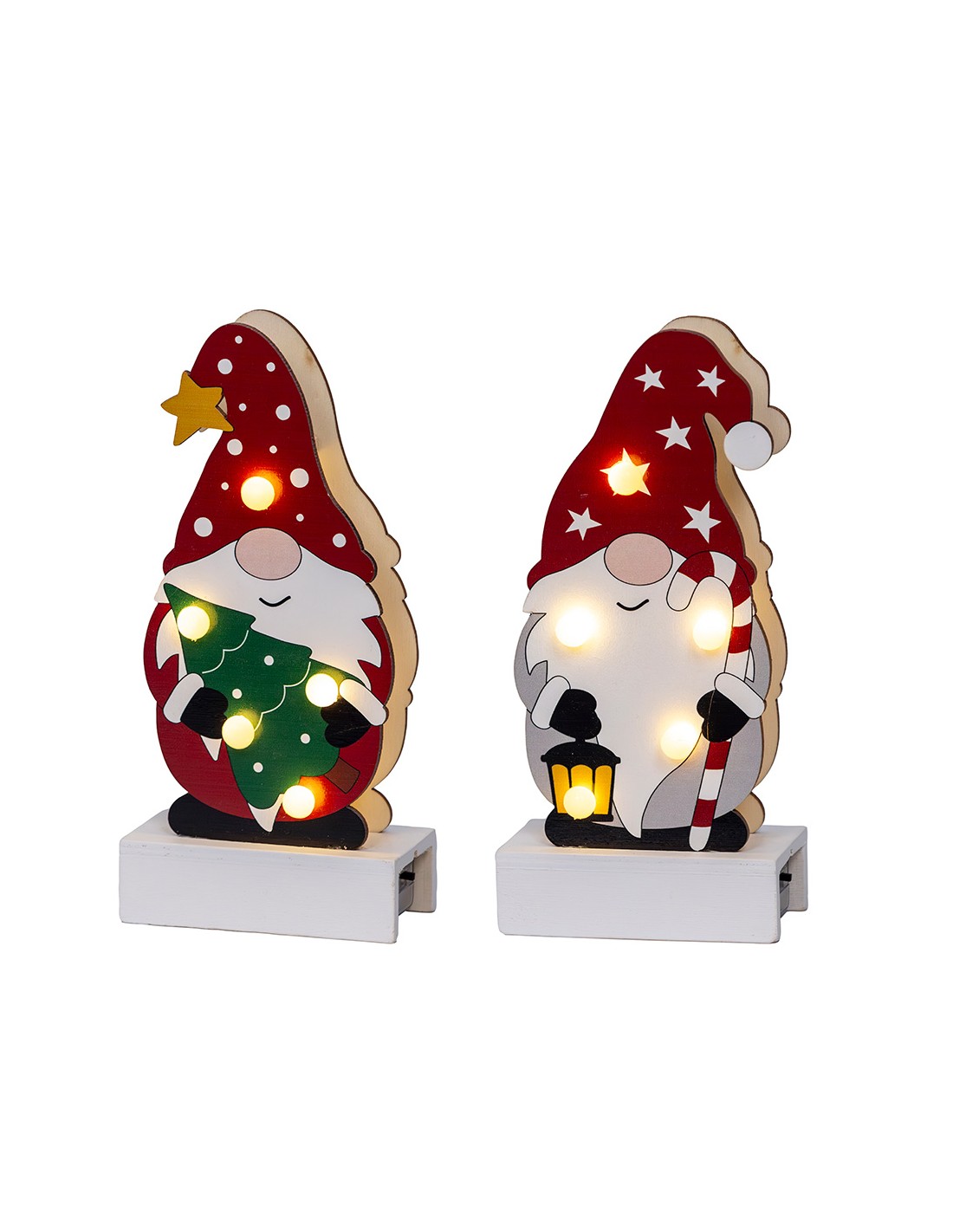 Figura gnomo de madera contrachapada con led, luz cálida, para interior, funciona con pilas 2 x aa (no incluidas), con temporizador 6 h encendida/18 h apagada, medidas: 8,50 x 4,50 x 18 cm, modelos variados