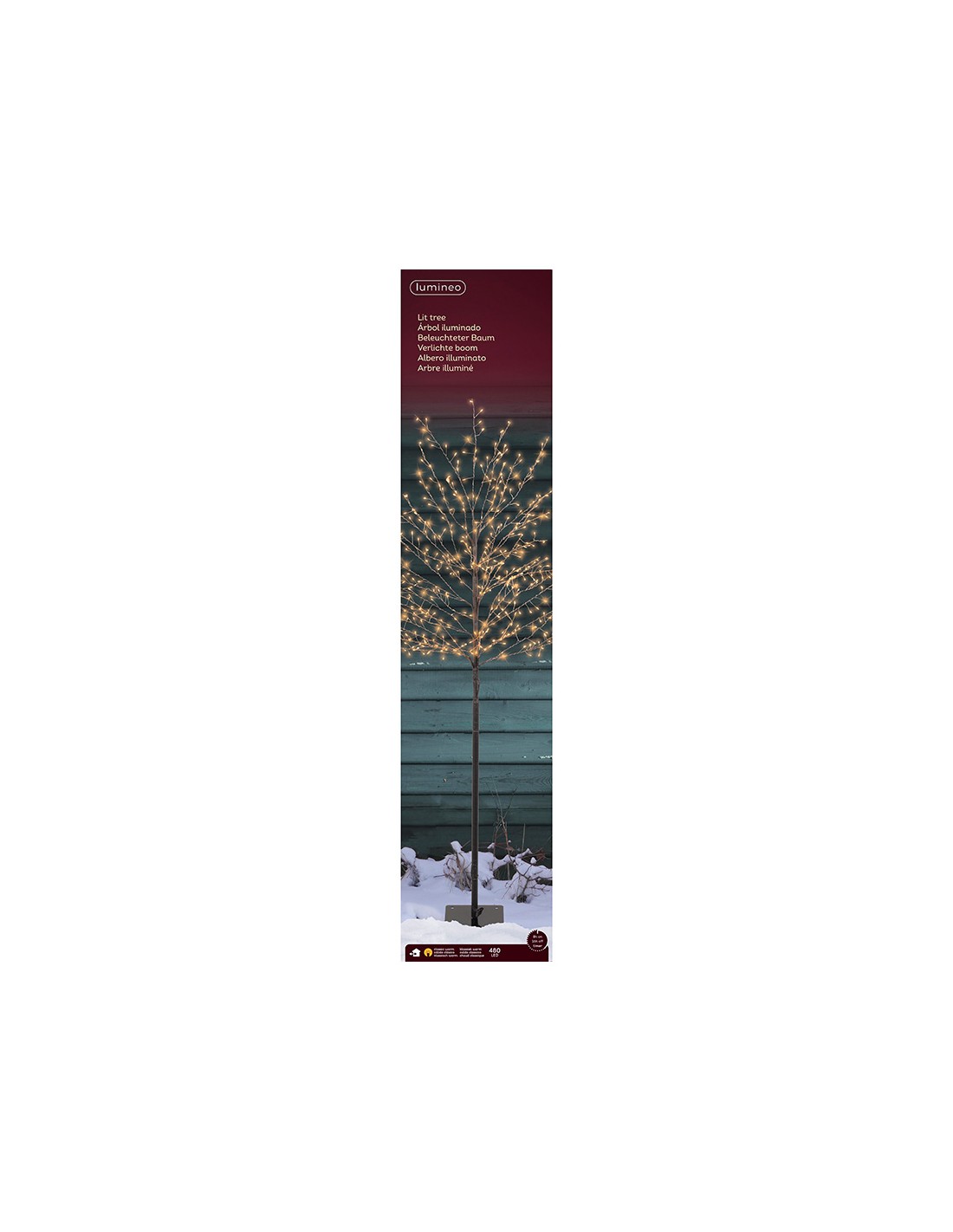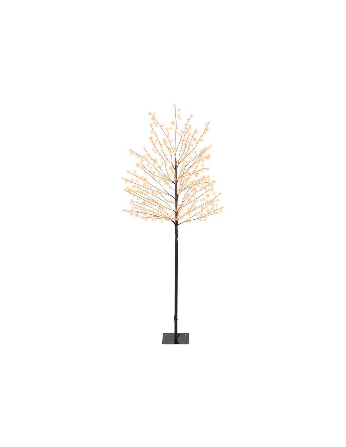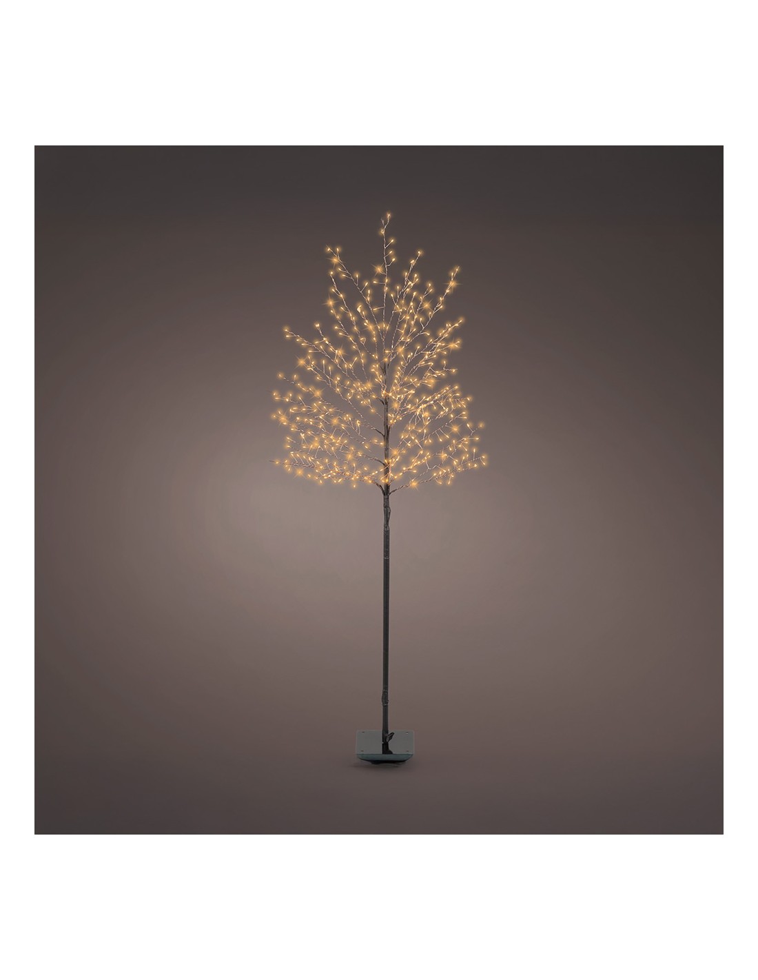 Árbol iluminado con estructura negra, 480 leds, luz cálida, para exterior, cable de alimentación 5 m, con temporizador 6 h encendida/18 h apagada, 1,5 m