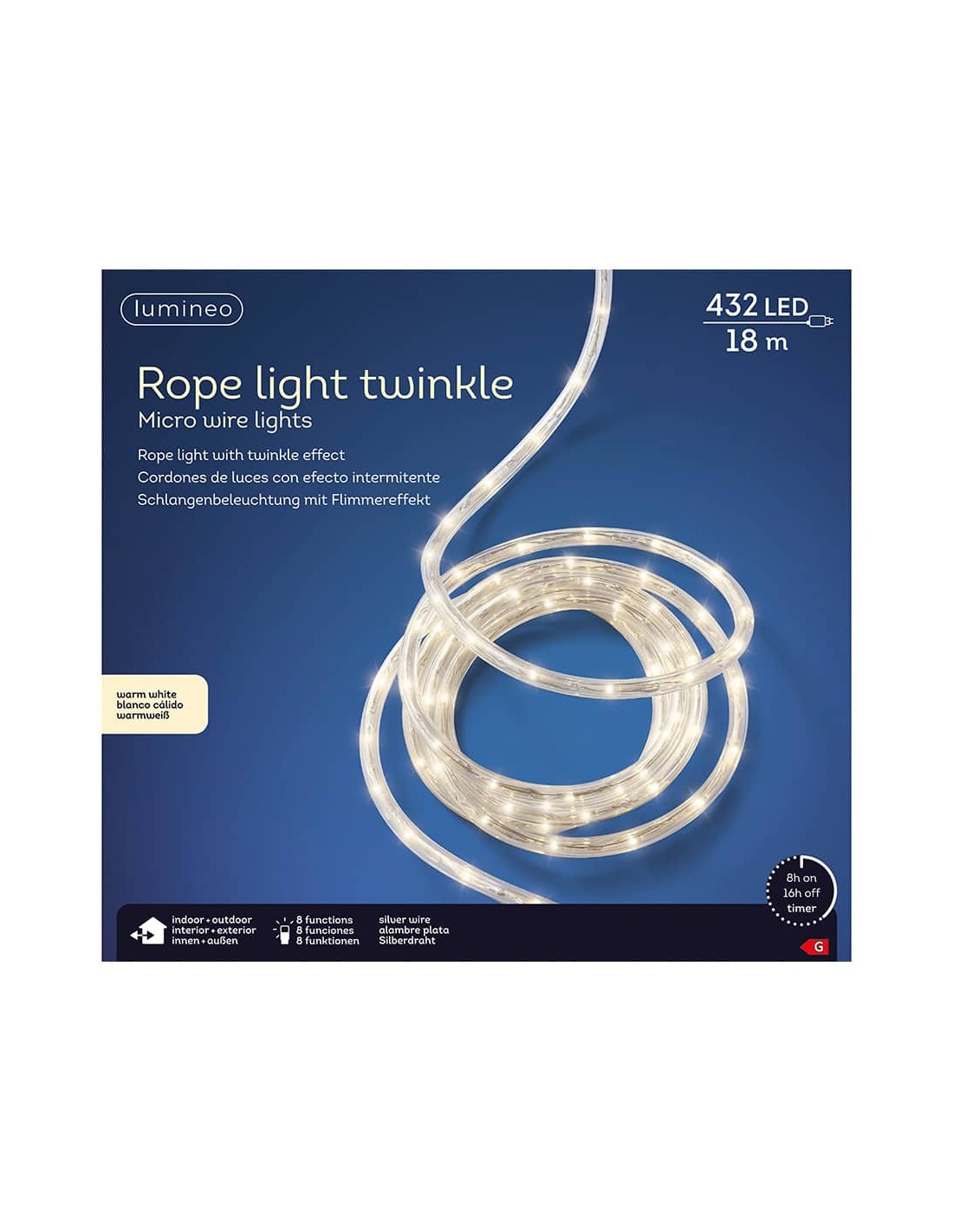 Cordon de luces con efecto intermitente 432 leds 9 m. material: pvc. funciones: efecto parpadeo de 8 funciones. uso:exterior. color led: luz cálida