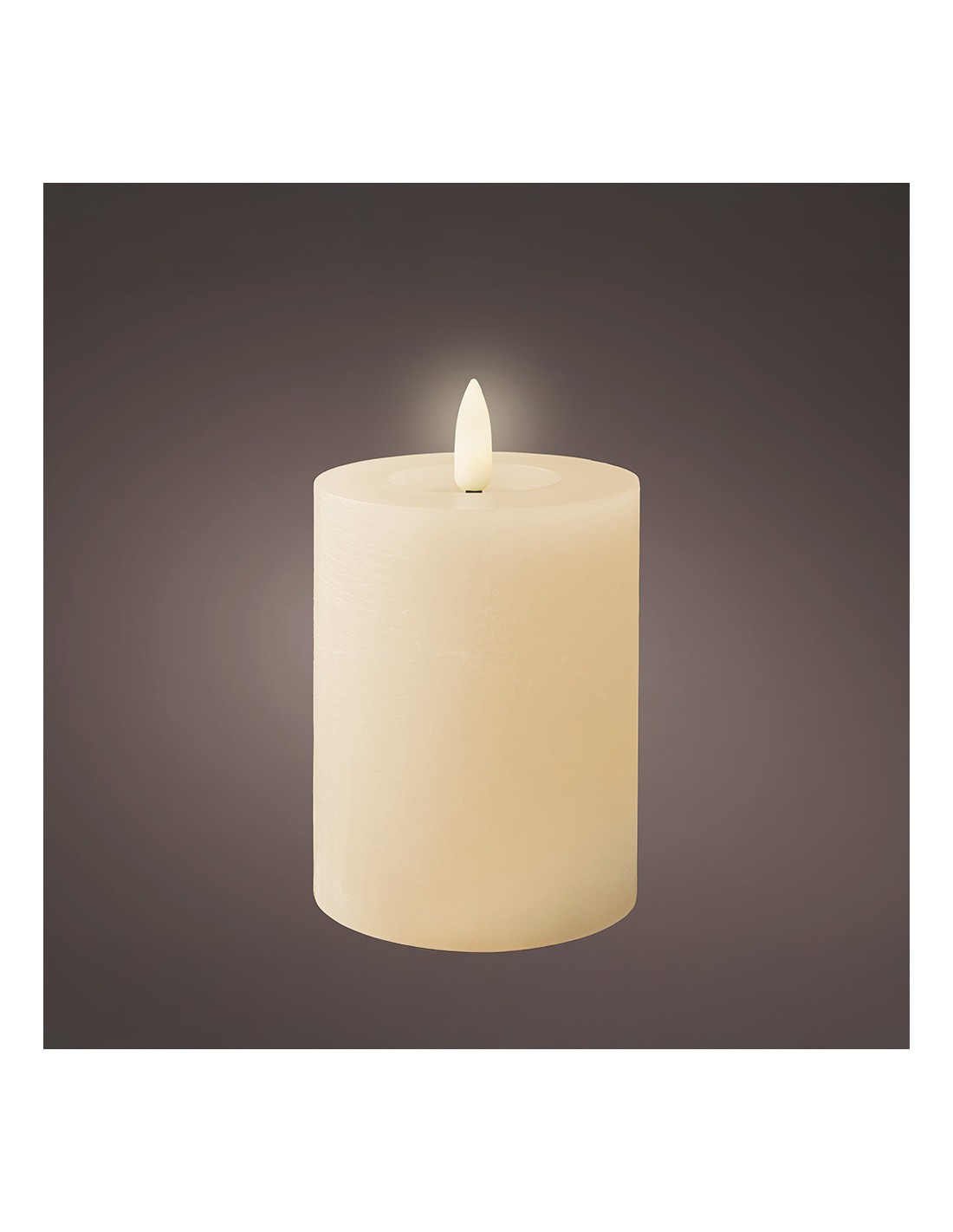 Vela de cera led, efecto llama, color beige, superficie lisa, acabado rústico, medidas: ø7 x 11,2 cm. uso: interior. color led: luz cálida con temporizador 6 h encendida/18 h apagada autonomía: 250 h funciona con pilas 2 x aaa (no incluidas)