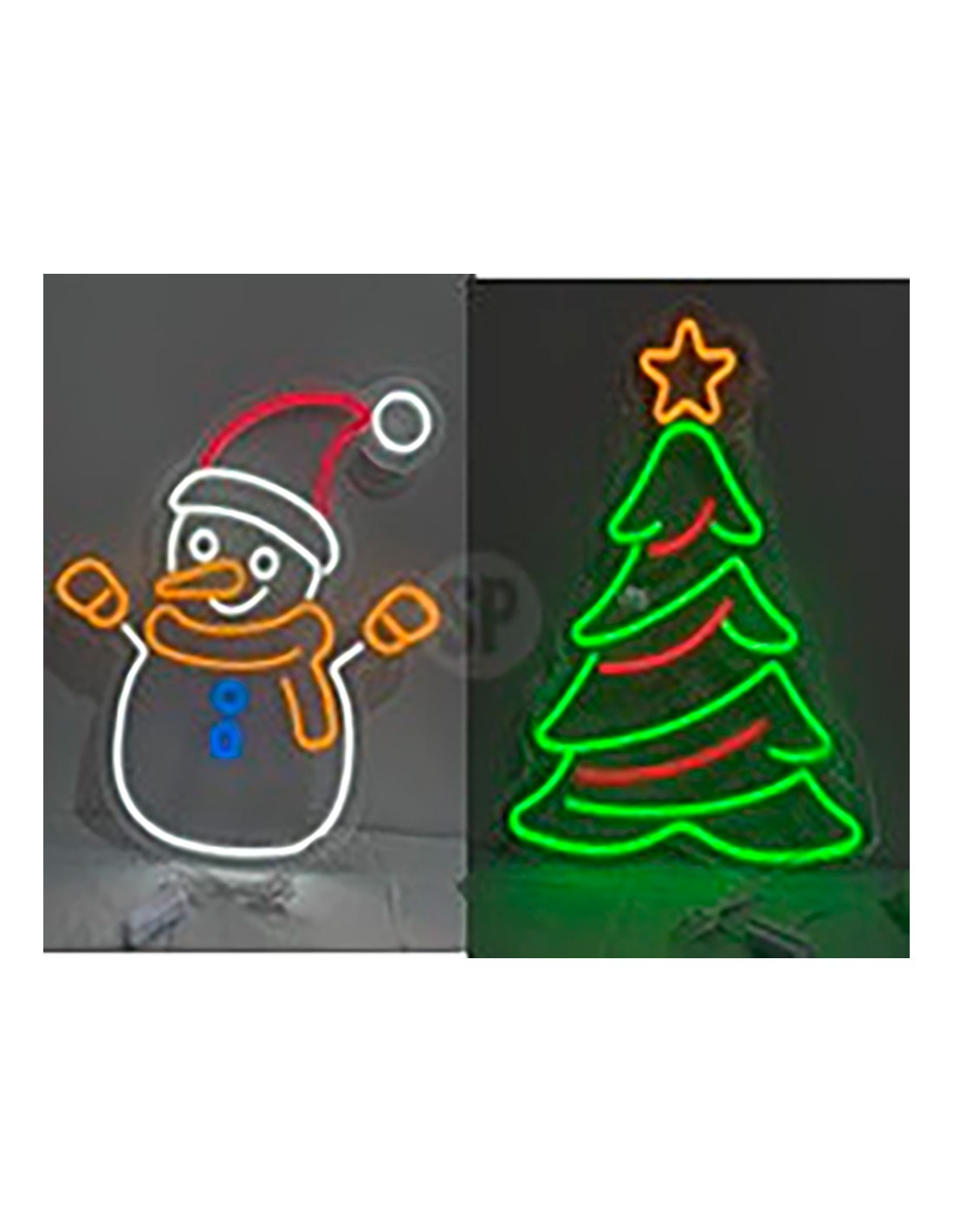 Figura navideña de neón, idonea para colgar, con usb e interruptor de encendido / apagado. cable blanco 2 m. material marco ps y tiras de pvc, cobre. muñeco de nieve 45 x 52 cm y árbol de navidad 38 x 50 cm