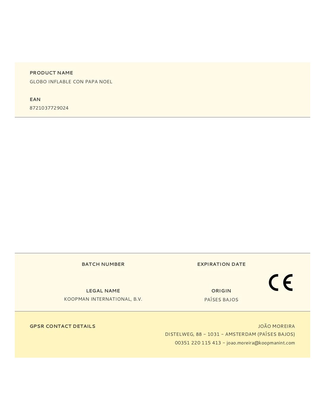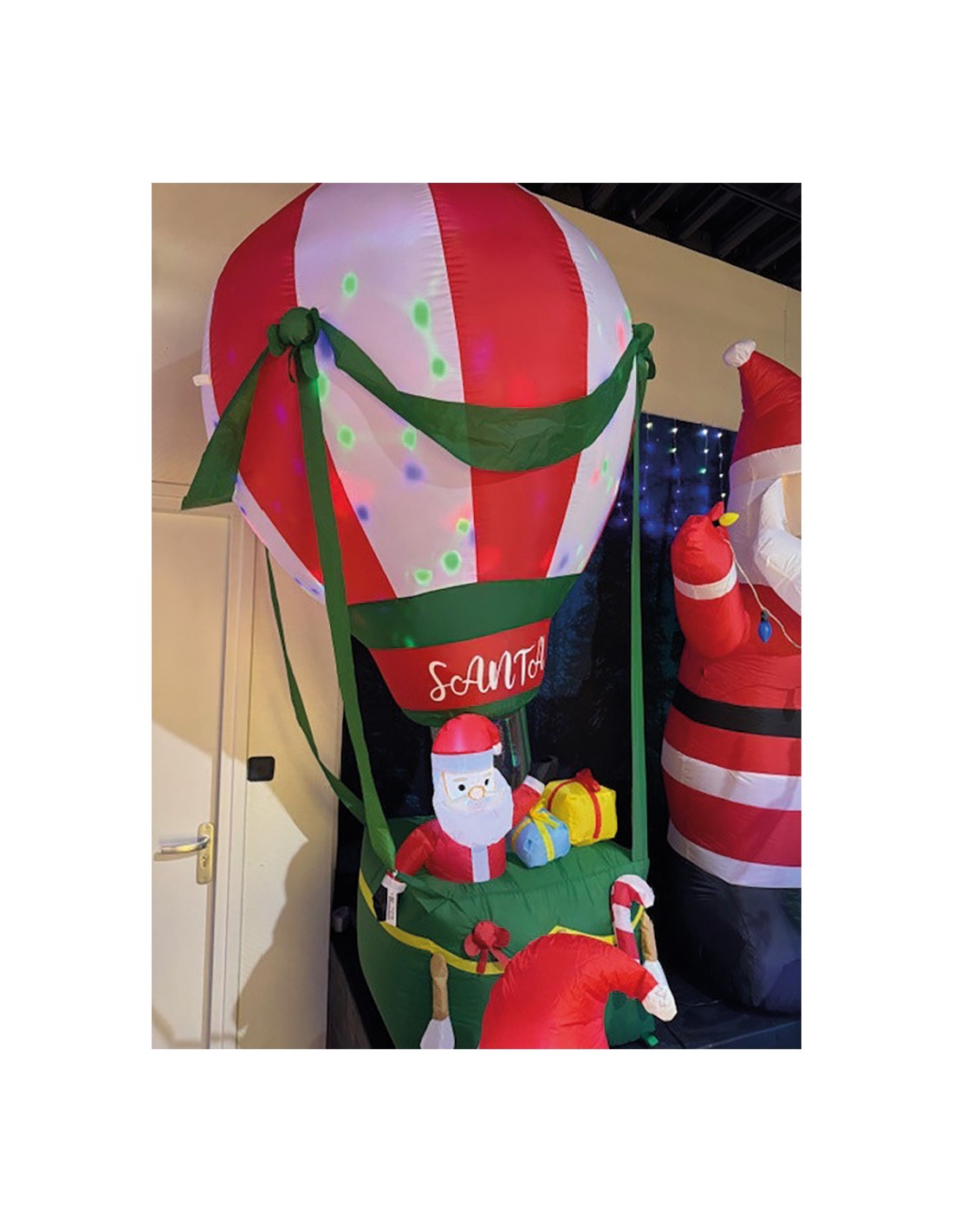 Globo inflable con papá noel con luz led, 15 w, 220 - 240 v ~50/60 hz, para exterior ip44, adaptador gs-1250 ma, material poliéster, cable 1,8 m, con 6 estacas y cuerdas para sujeción al suelo, dimensiones 110 x 110 x 210 cm