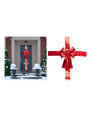 Lazo rojo para puerta, dorso dorado, material poliéster, con velcro para sujetarlo, ancho de la cinta 10 cm, dimensiones del lazo 33 x 42 cm