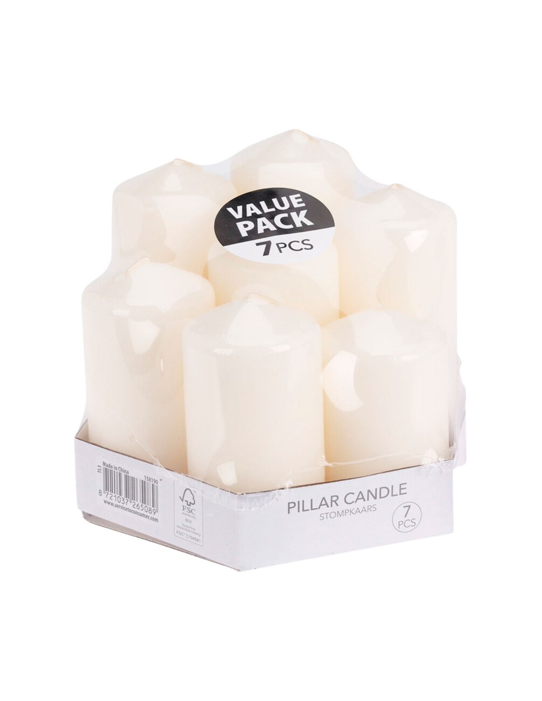 Velas de cera blancas, superficie lisa, ø55 mm con diferentes alturas. dimensiones: 1 / ø55 x 90 mm, 1 / ø55 x 100 mm, 1 / ø55 x 110 mm, 1 / ø55 x 120 mm, 1 / ø55 x 130 mm, 1 / ø55 x 140 mm, 1 / ø55 x 148 mm pack de 7 uds