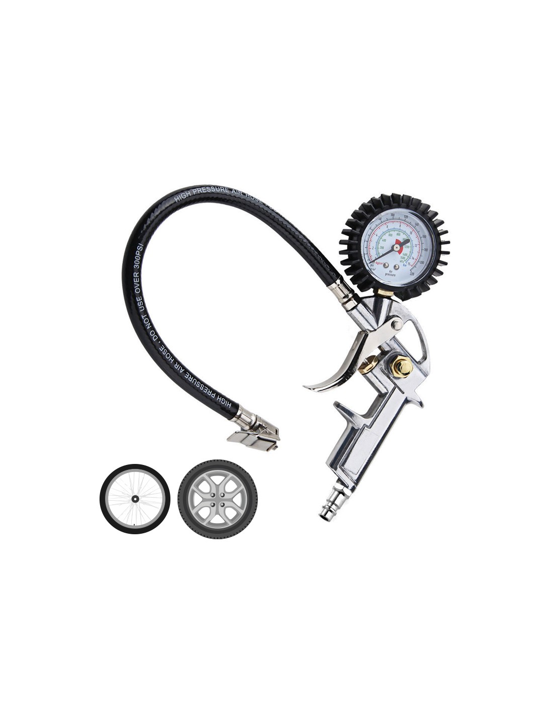 Pistola con manometro para compresor de inflado psi220 15kg/cm 15 bar 1500kpa